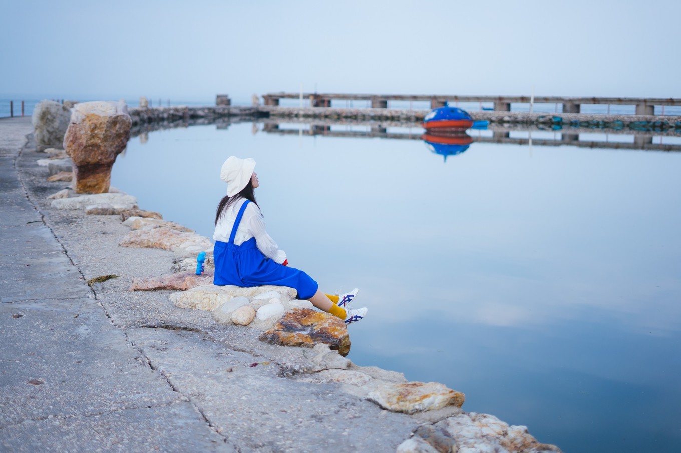 海邊大塊的巖石,平整的讓人想躺一會(huì)兒,但是還是很硬,我的老腰啊,坐了一會(huì)兒,來了一對(duì)情侶,嬉笑、拌嘴著拍照,是一種有趣的小甜蜜