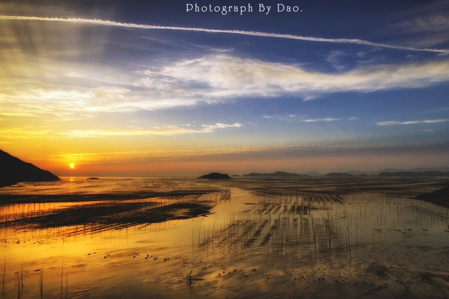 2.夏:夏天天氣晴好,雷陣雨之后或者臺(tái)風(fēng)前后,空氣特別通透,云霞變化迅速,天空走云,陽(yáng)光穿行,地面變換瞬間迥異,這時(shí)你要耐心守侯,天隨人愿,那些“舞臺(tái)光”“電筒光”準(zhǔn)會(huì)照臨在你要拍照的主體對(duì)象,你心中的激動(dòng)真是妙不可言。臺(tái)風(fēng)來(lái)臨前天總是藍(lán)天白云,而海上卻大浪滔天,晨昏可拍到數(shù)米甚至數(shù)十米高的金浪,難得驚濤拍岸壯觀。夏天可拍小皓海灘、沙江晾收海帶,三沙東壁晚霞、溪南鎮(zhèn)圍江掛蠣等。