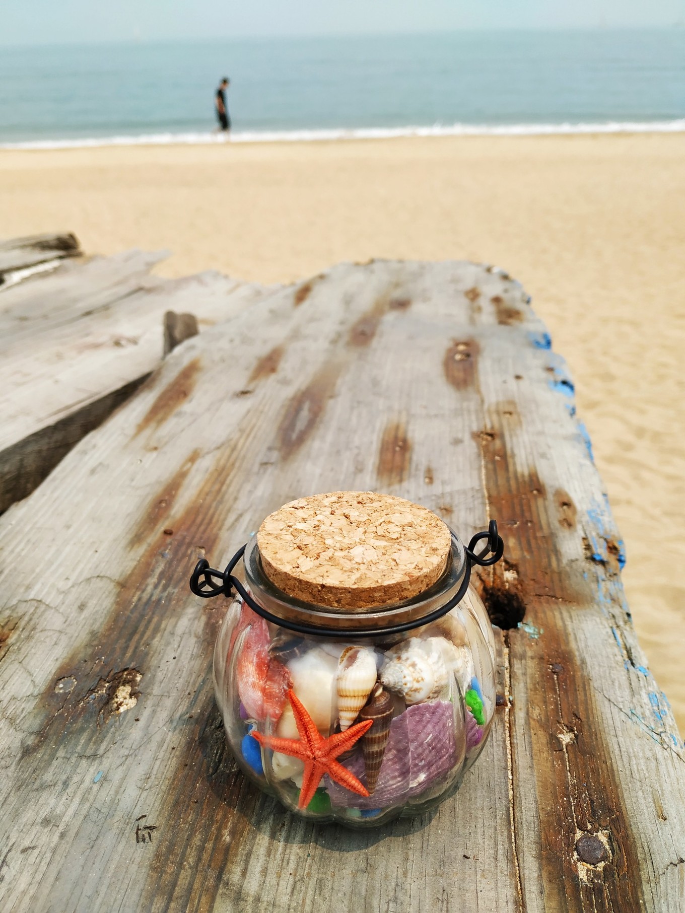 上圖,海邊走道邊有小攤賣(mài)各種貝殼的,自己裝滿(mǎn)一個(gè)小的玻璃瓶子,15元一瓶,自己組裝,很漂亮。
