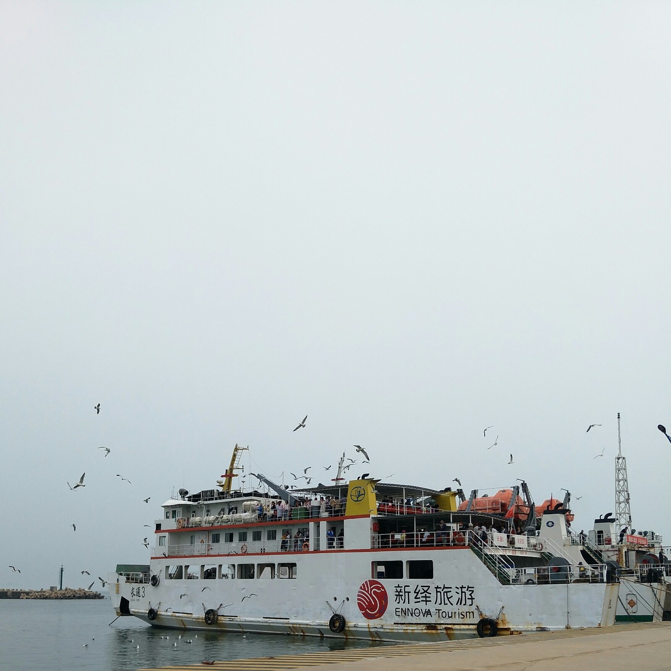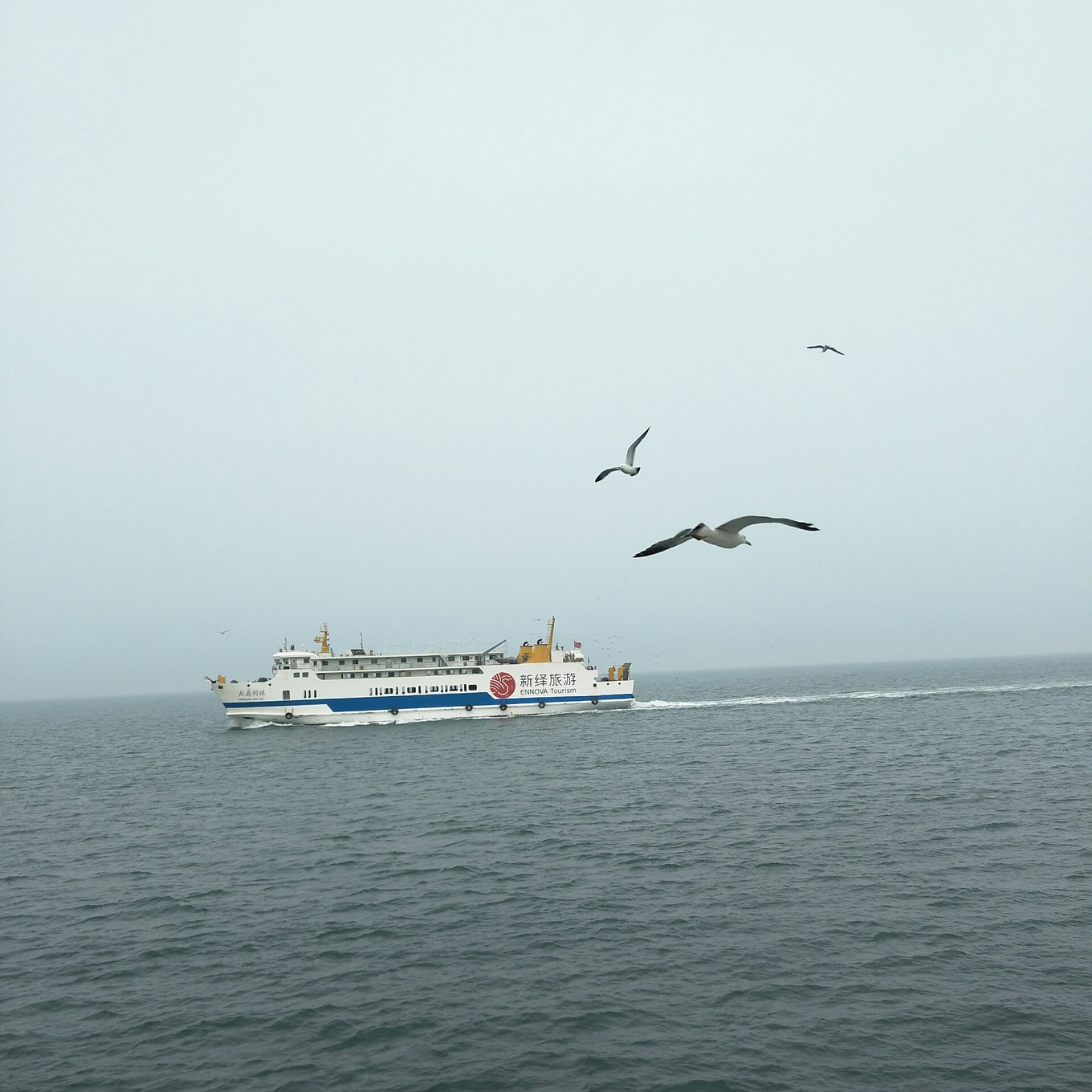輪渡去長(zhǎng)島,一路海鷗長(zhǎng)島四面環(huán)海,距離蓬萊海邊不是很遠(yuǎn),但是輪渡還是需要坐45分鐘左右。長(zhǎng)島一共有大大小小島嶼30多處,其中20多處尚未開(kāi)發(fā),島上人主要居住在南島,縣政府、醫(yī)院都在南島,北島基礎(chǔ)設(shè)施不是很高,生病了相對(duì)費(fèi)勁。輪渡發(fā)動(dòng)后,會(huì)有成群的海鷗伴著輪渡前行,他們知道會(huì)有乘客給他們喂食,應(yīng)該是他們自己總結(jié)出的經(jīng)驗(yàn)吧。