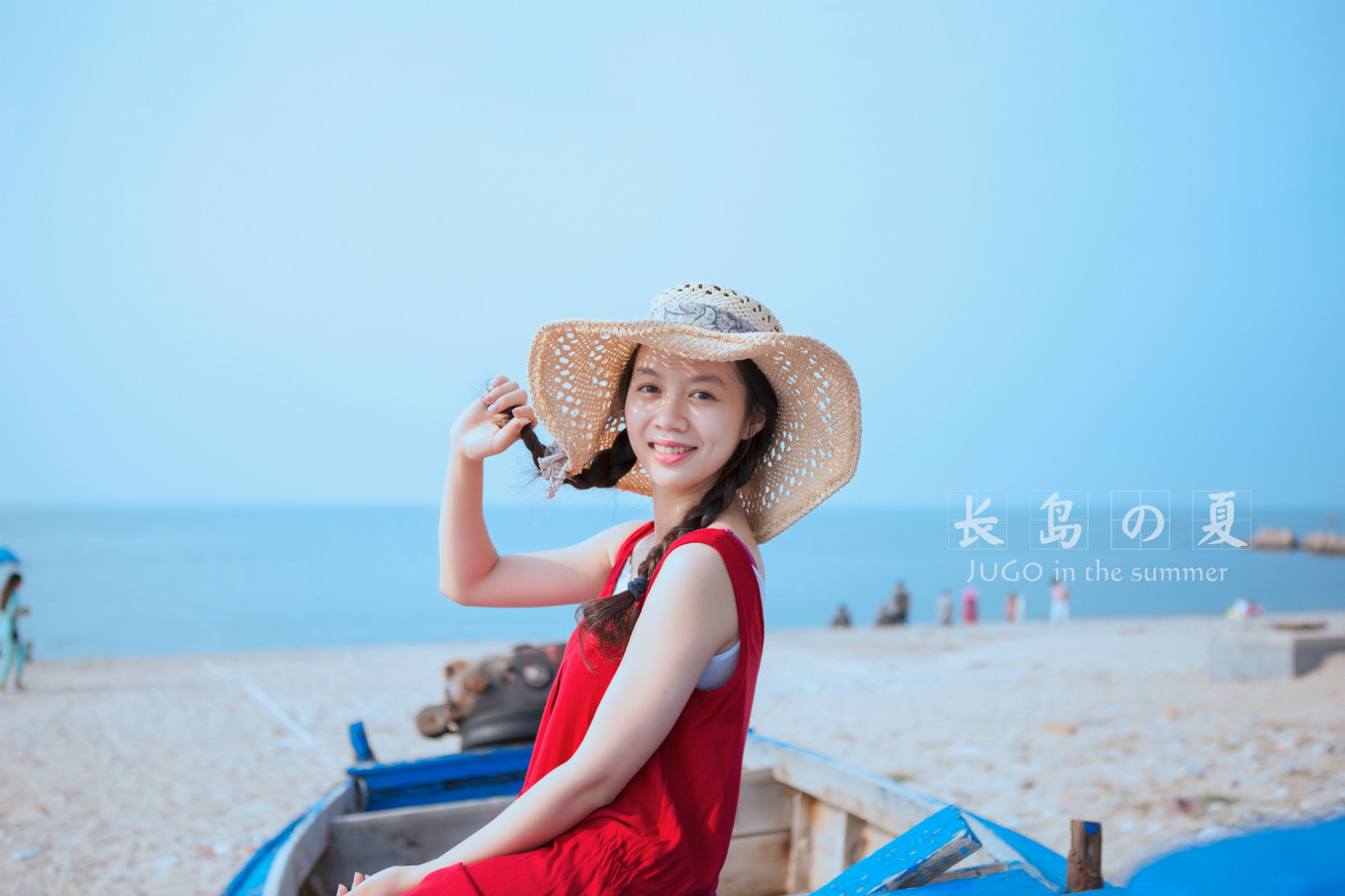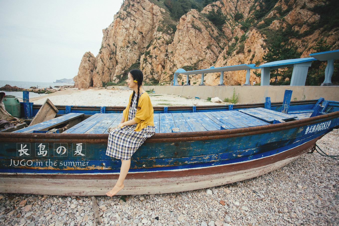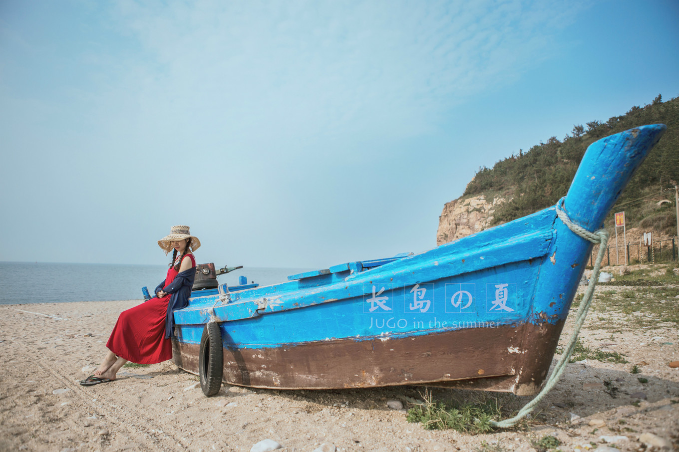 海灘邊的一條藍(lán)色的小木船,好像是偶像劇里的感覺。