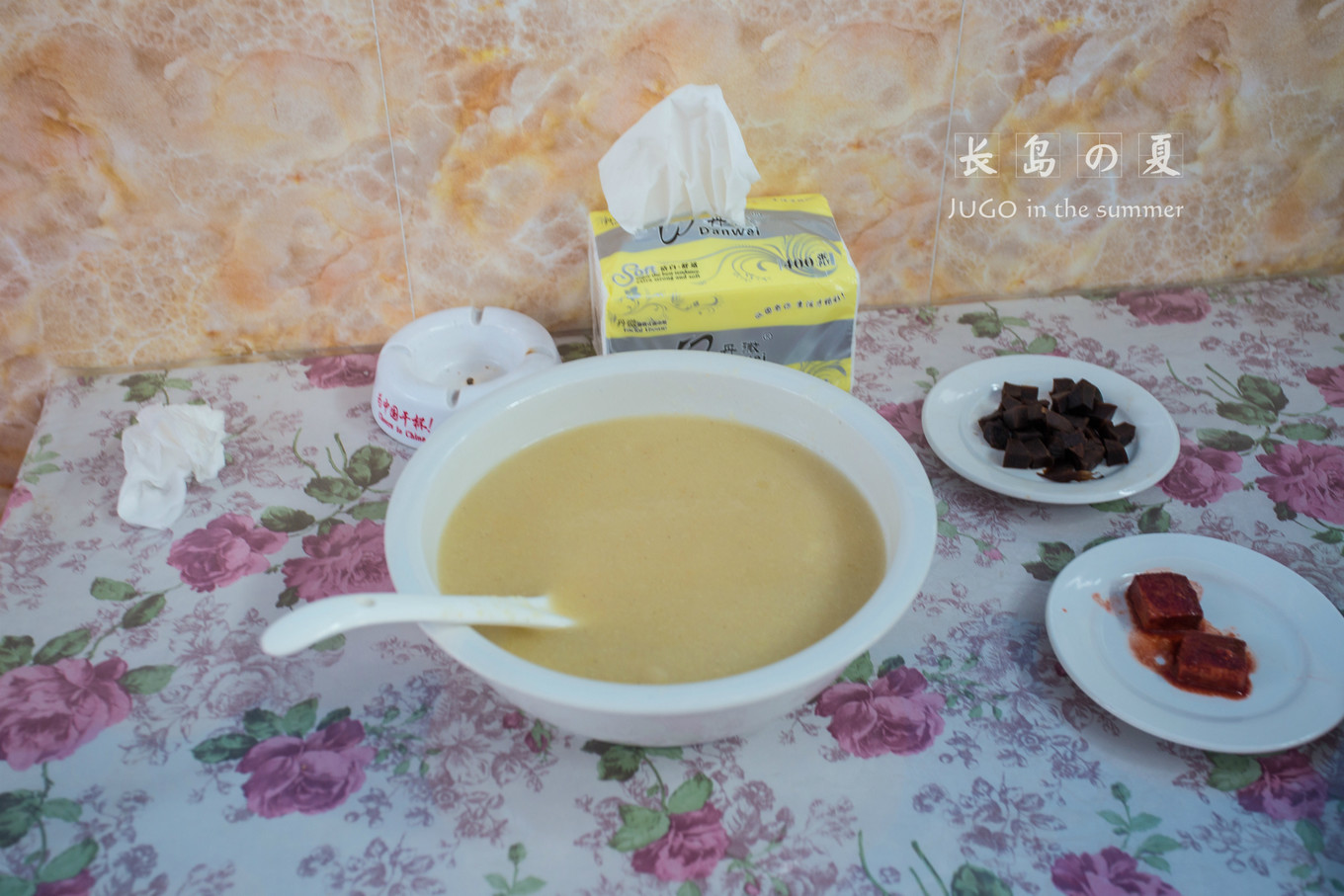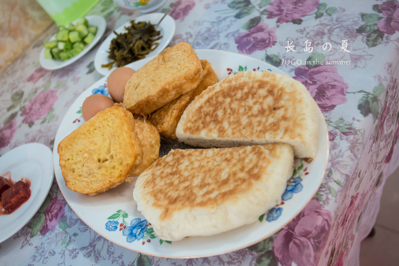 下山吃早飯,還是如此豐盛。右邊那個(gè)就是帶甘甜味道的烙餅。