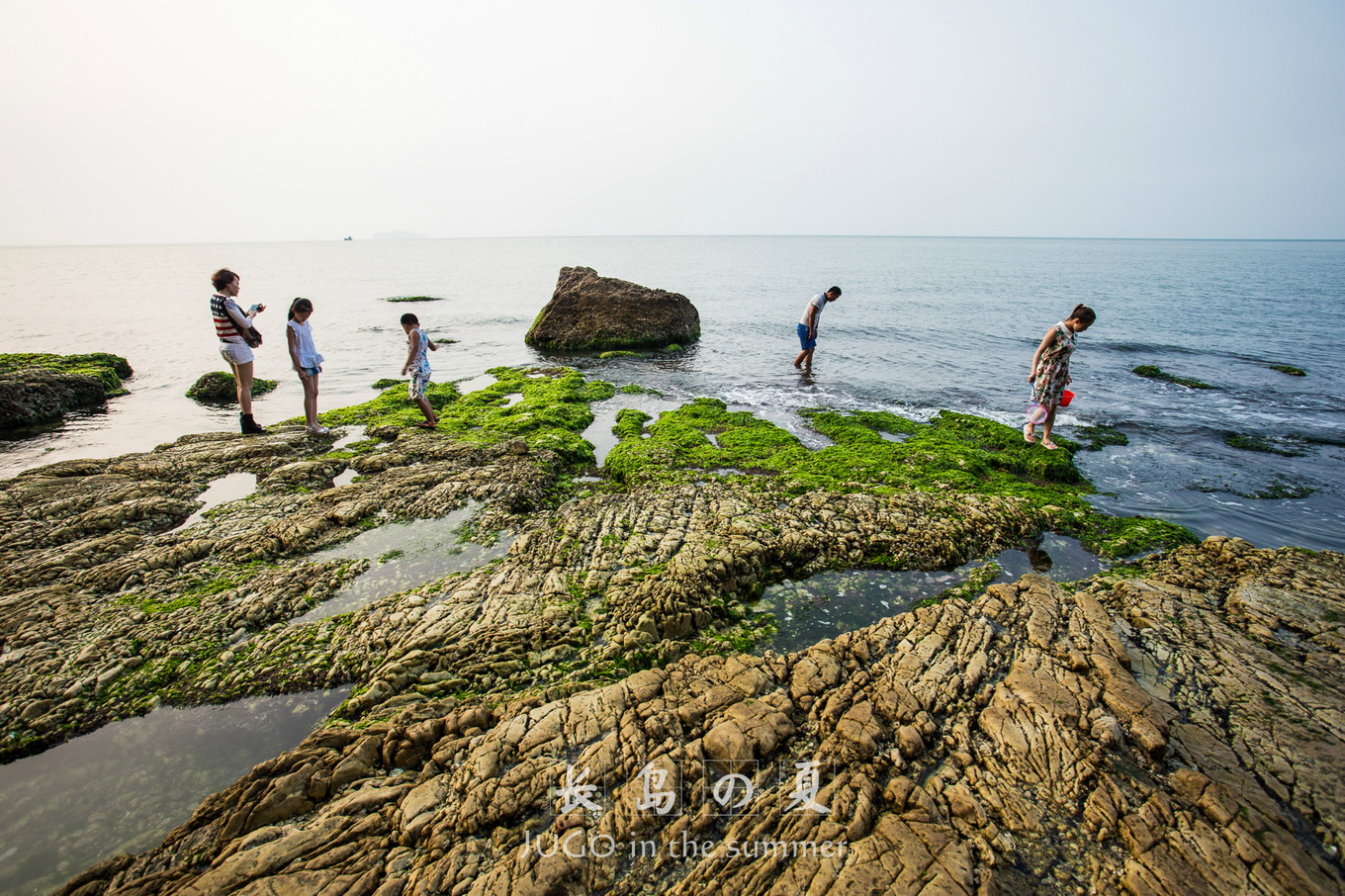 這里的礁石上有很多綠色的青苔和海草,最好不要貿(mào)然踩在上面防止滑落。