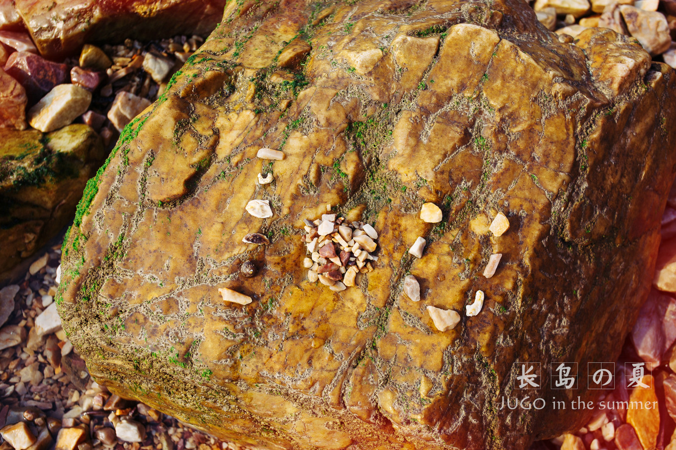 就是這個(gè)石頭,踩上去圓圓的滑滑的。在太陽(yáng)光的照射下仿佛是透明的。