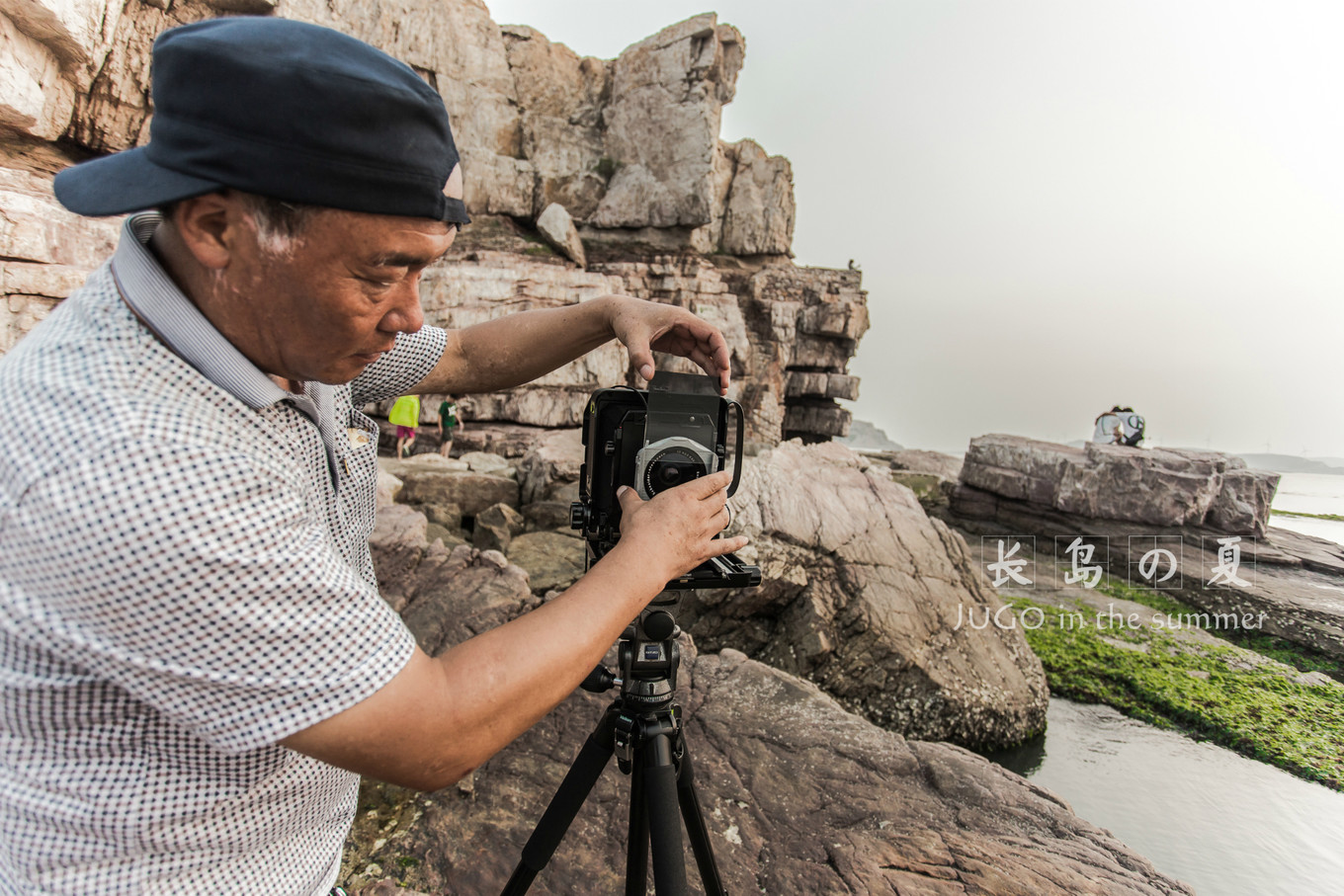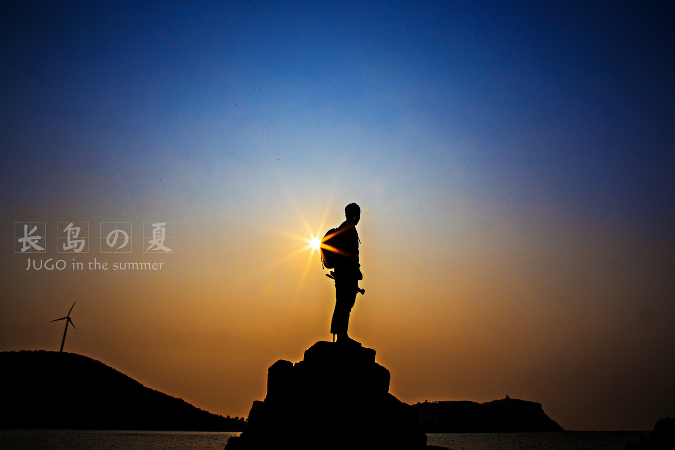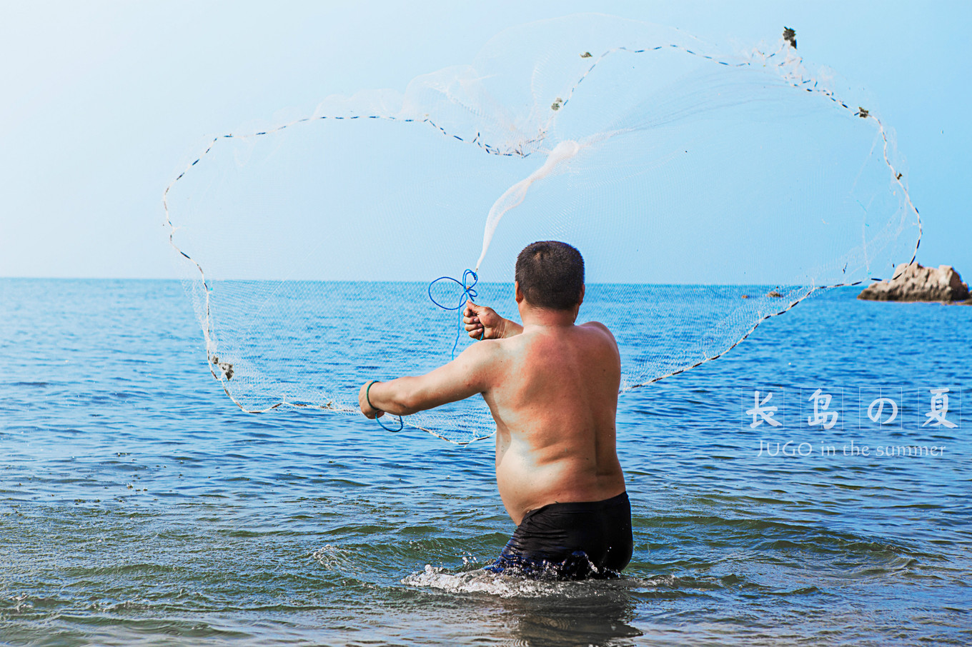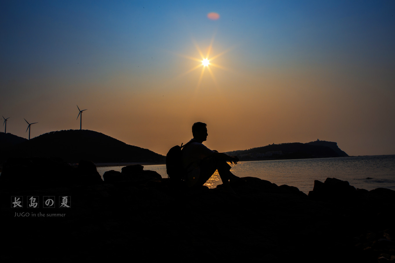 六叔坐在礁石上的剪影。