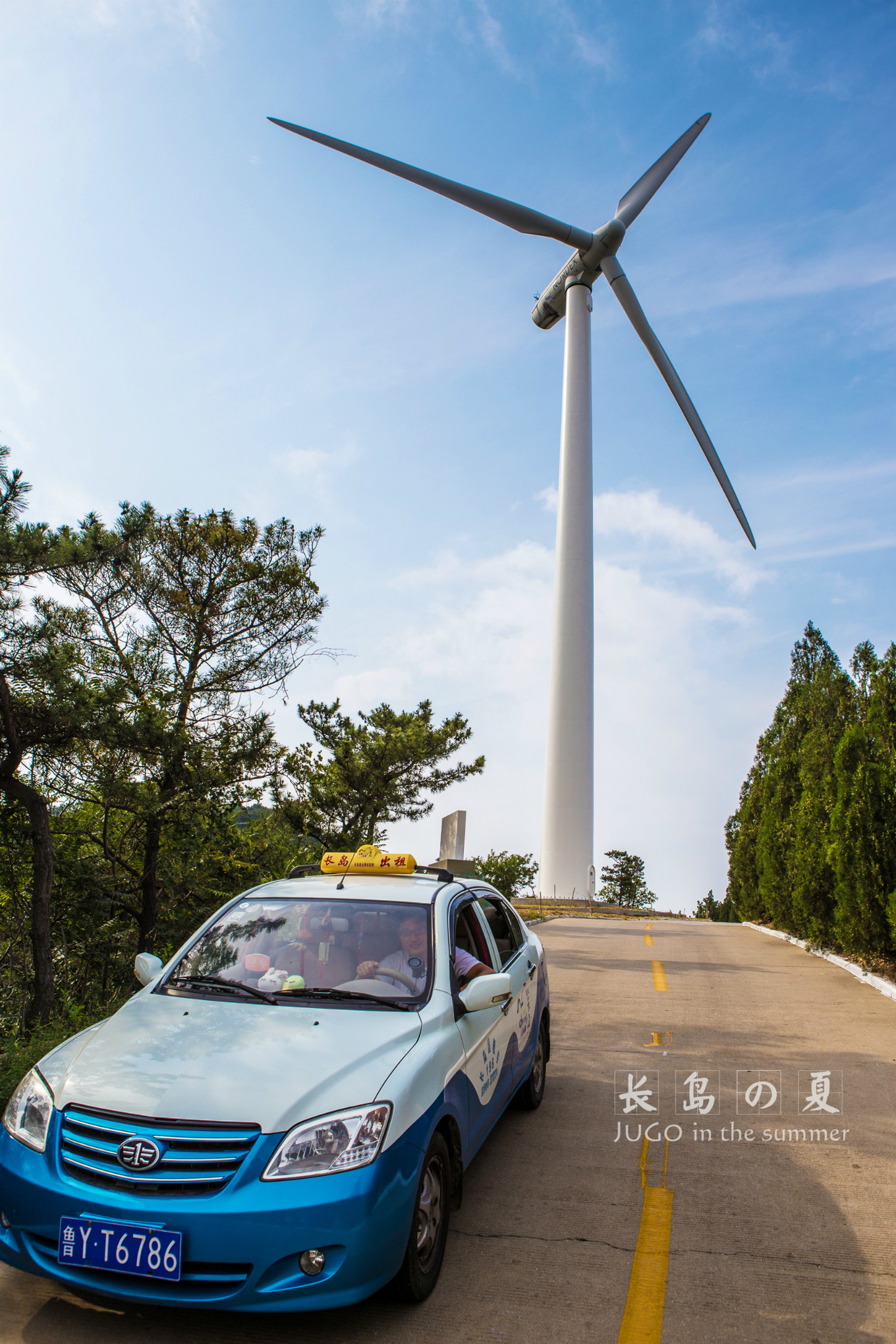 北方農(nóng)村道路兩旁不是玉米地就是蘋果園,農(nóng)貿(mào)市場(chǎng)全是用拖拉機(jī)裝的蘋果,遠(yuǎn)方的山上都是巨大無比的風(fēng)車,好神奇喔。沿途的道路藍(lán)綠分明,很是怡人。