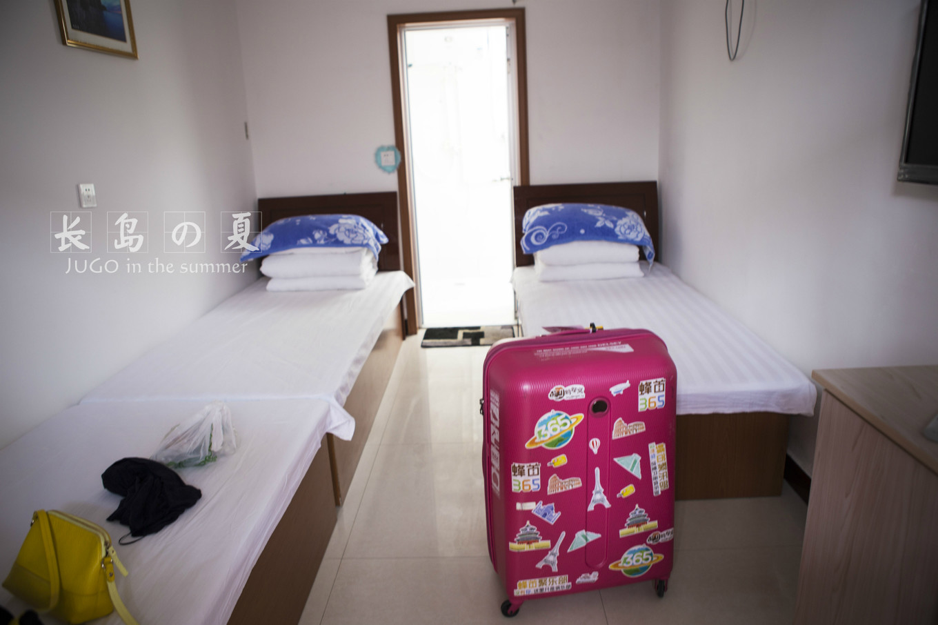 漁家樂的房間不大,但是挺整潔的。對(duì)于我們這種出行對(duì)住宿要求不是特別高的兩口子來說,這兒還算是可以接受。ps.我和六叔頭對(duì)頭睡在一起,忽然有了種軍訓(xùn)的感覺。