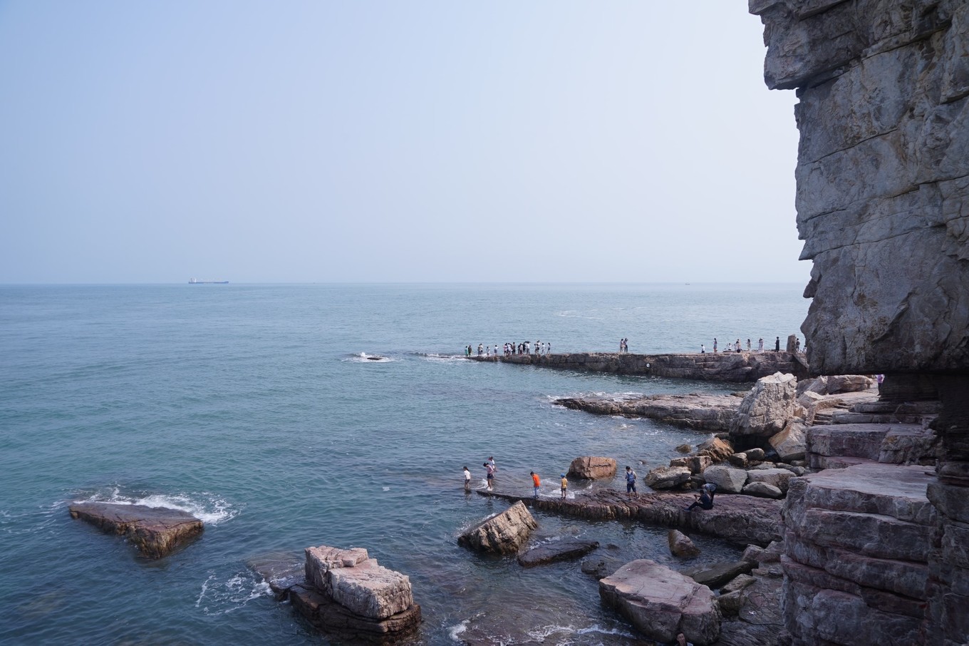 來長島旅游,一定要去九丈崖。位于長島北長山島西北角的海濱斷崖,藍天、碧海、白浪、石崖、礁石、長廊、港灣交相輝映,一副獨特的壯觀影像,沖擊你的視覺感官。