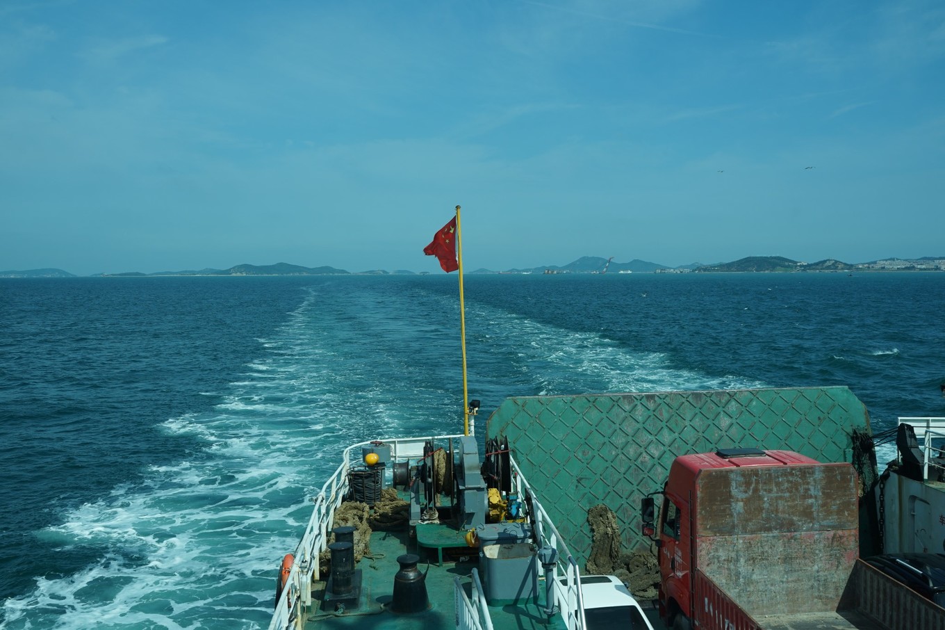 八月底攜夫人自駕游山東半島,第一站就是長島。七個小時的的行程達560公里,下午3點半到蓬萊。原計劃在蓬萊過夜,開車到蓬萊客運站,恰好有渡輪,便臨時決定乘船過海。渡輪過海手續(xù)很簡便,驗過身份證,看過汽車后備箱,算是安檢完成,汽車順利開上船。長島南北島景點相距十幾公里,自駕帶車上島游玩會很方便。