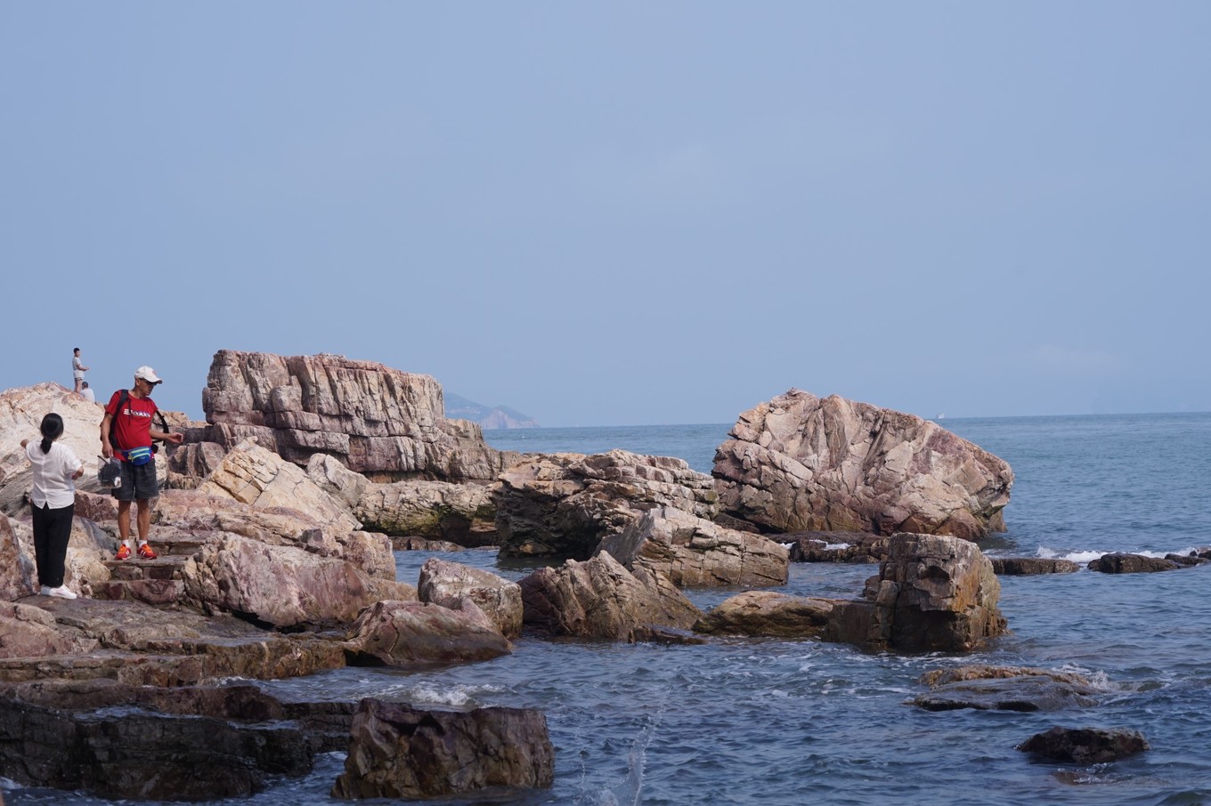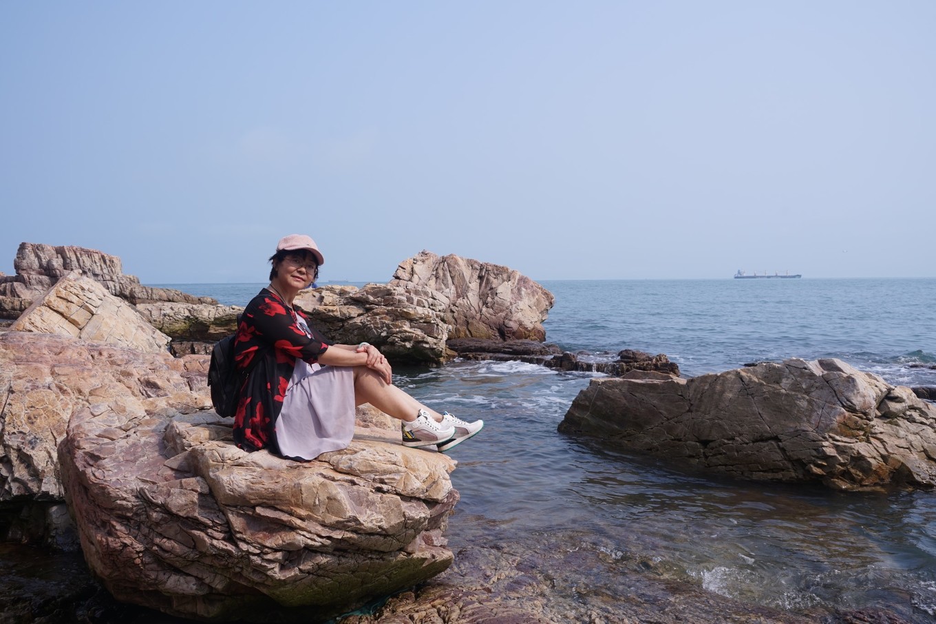 坐在礁石上,被浪花打濕衣鞋而全然不顧,與浪花握手,與巖石交流,時間似乎在此刻凝固,這一刻,我們能深深感受到大海帶來的溫馨,博大與愛撫。生活中的繁雜,人世間的煩惱,此時全然忘記,繼而化作那串串水沫,隨波逐流。