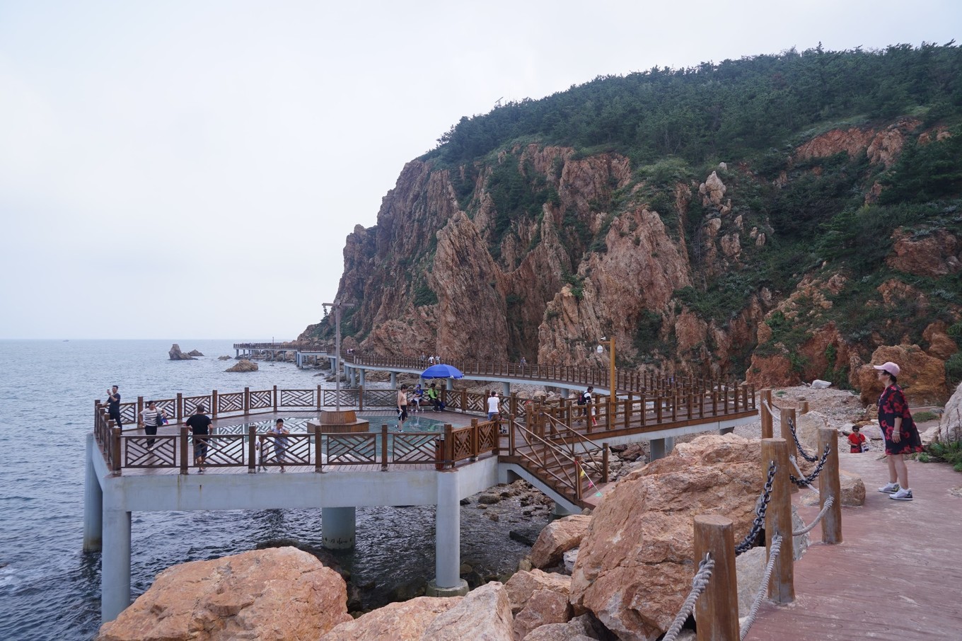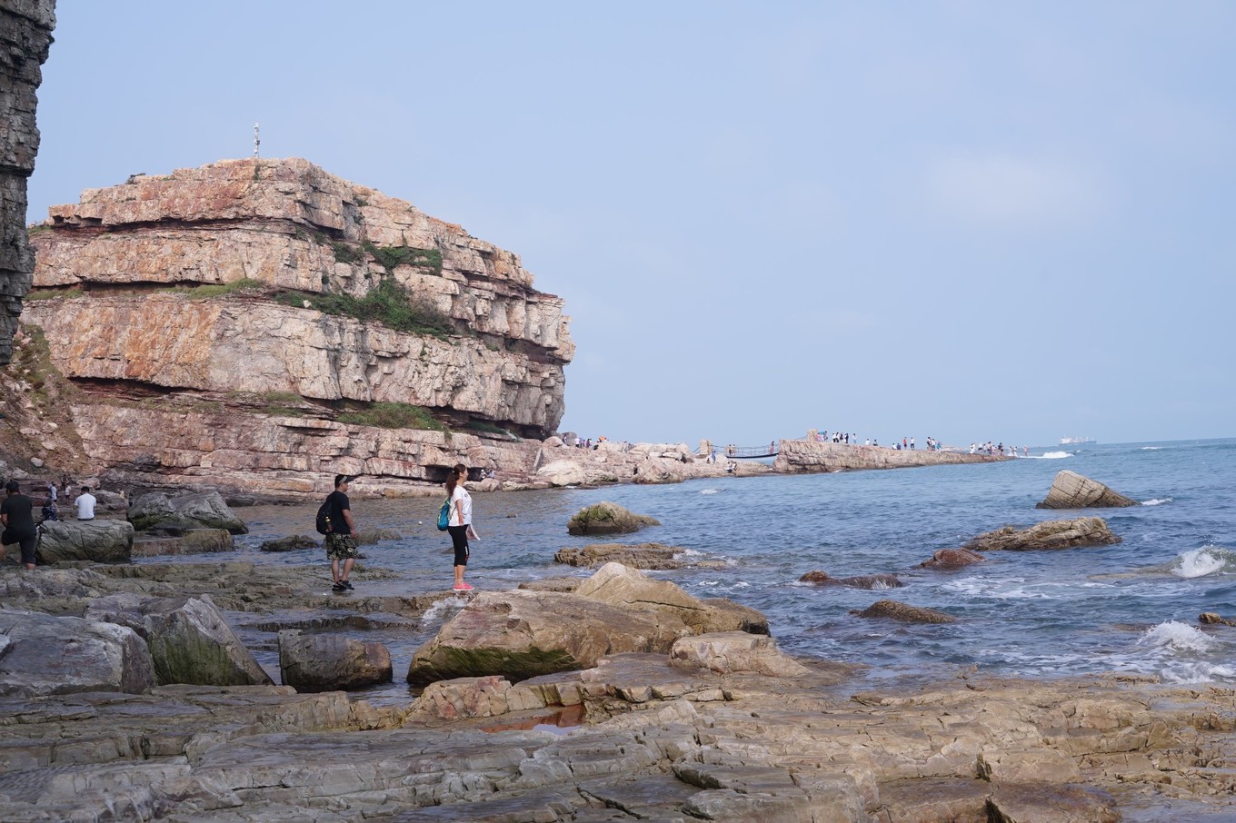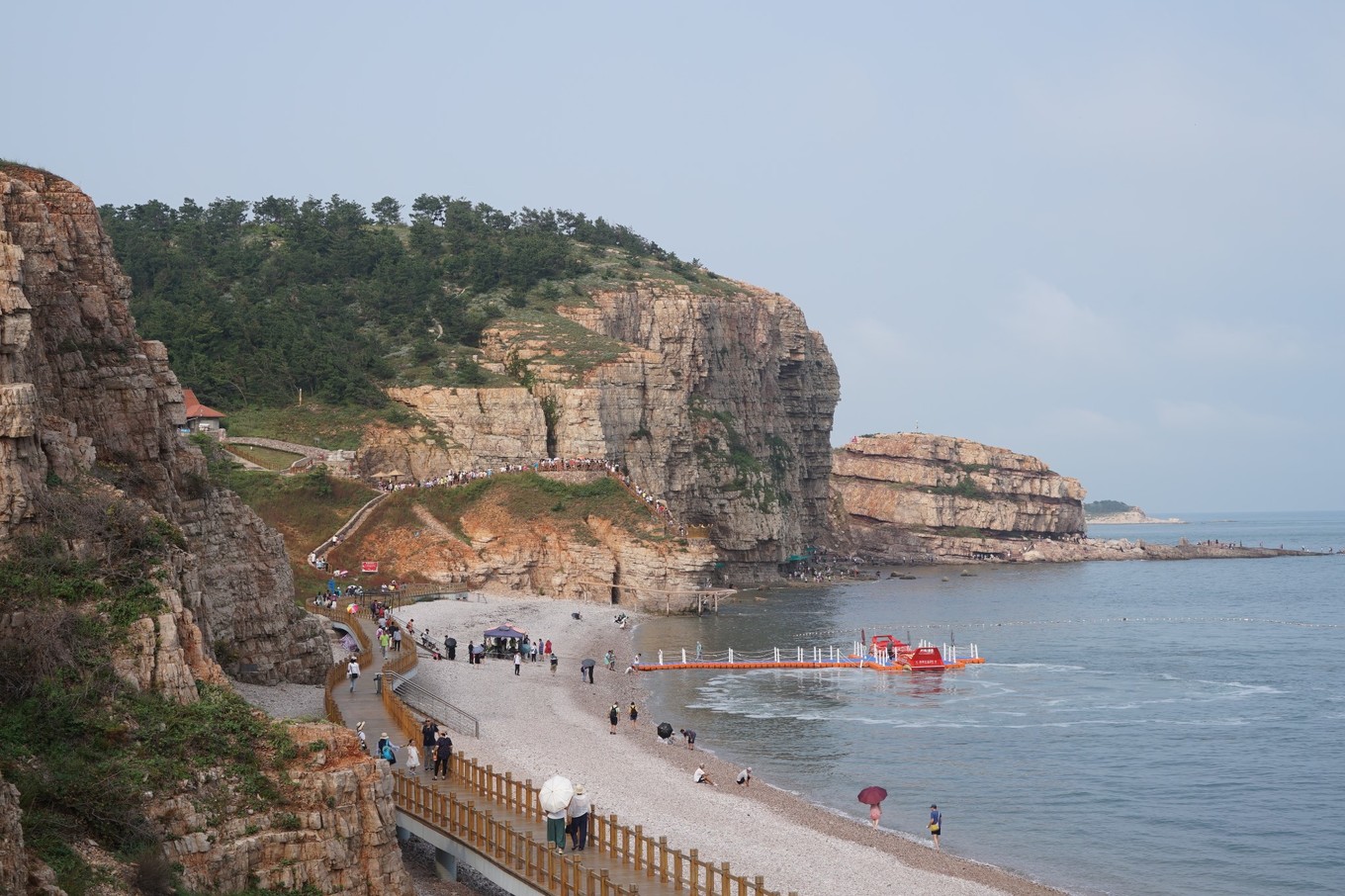 長山尾,面對黃海,海水清澈,海天一線景色宜人,陣陣海浪拍擊巖石發(fā)出有節(jié)奏的濤聲。走在海邊長廊上遙望大海、漫步鋪滿鵝暖石的海灘遐想,坐在凸起的礁石上聽濤聲,在大海中嬉戲玩水,一幅幅醉人的畫卷。