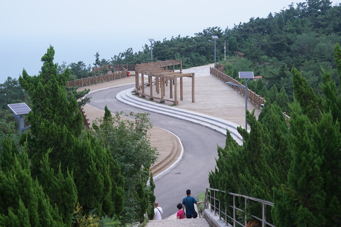 這條下山路也設(shè)計成S型,曲線優(yōu)美,和山下的大海相得益彰。