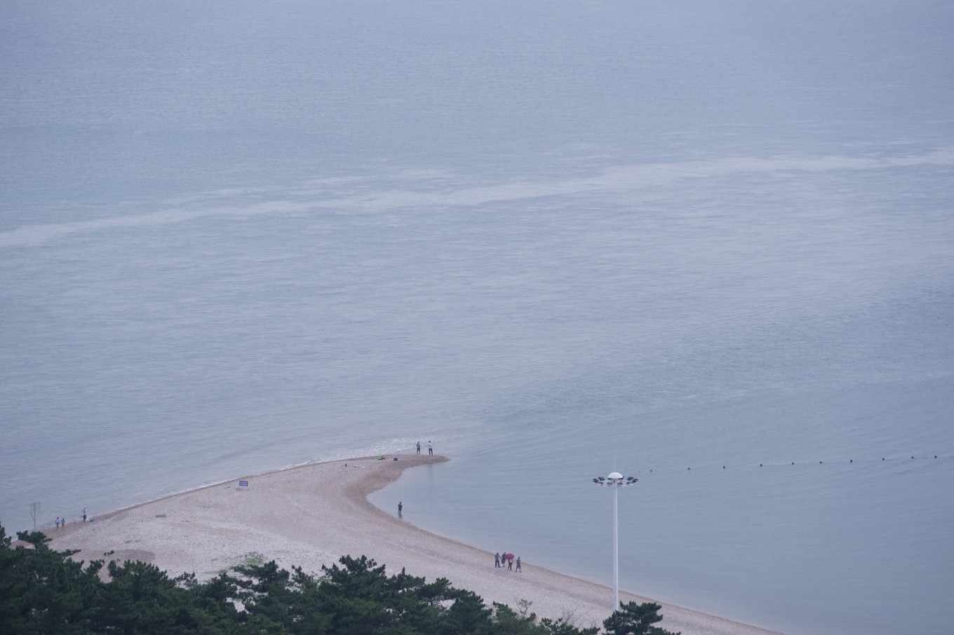 長山尾在島的最南部,是由各色卵石堆砌而成的,形狀由闊而尖,彎曲飄逸,渾然天成,海中則雪浪四濺。千載洪波,將滿灘的卵石洗刷得光潔如玉