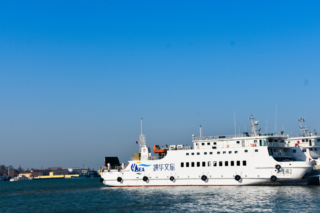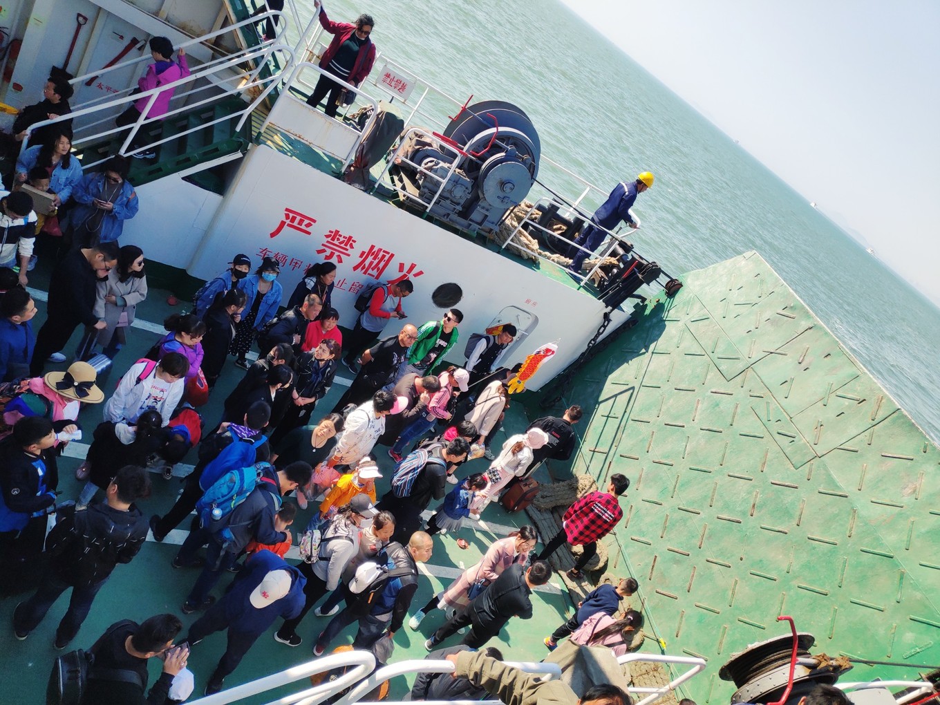 四十五分鐘后船到碼頭了,甲板被緩慢的放下來,跟著坐船的狗狗們也很著急要跟著主人趕快下船去島上玩咯!