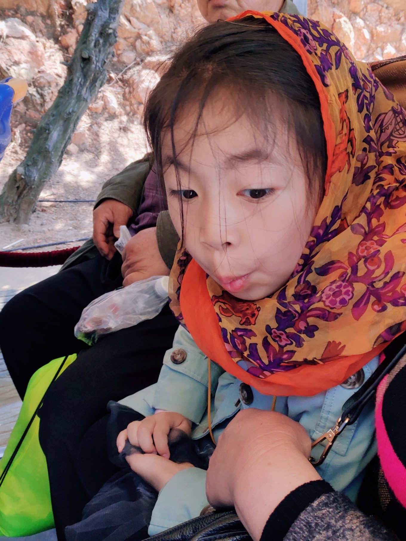 五一的高速就是龜速,本來預(yù)估滴八個(gè)小時(shí)車程因?yàn)槎萝囉昧耸膫€(gè)小時(shí)才到蓬萊。旅途中我和考拉一邊聽音樂一邊看風(fēng)景。如此漫長的過程她不吵不鬧,表現(xiàn)了超強(qiáng)的自控力和忍耐力,受到全車人的表揚(yáng)。