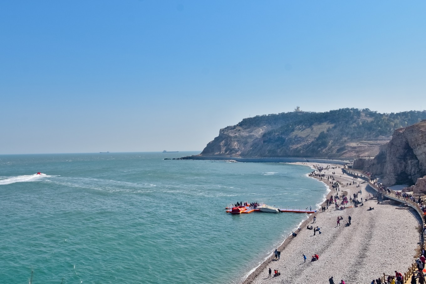 月牙灣因海灣形似一彎新月而得名,海灘延綿1000余米,是天然的海水浴場。月牙海灘為全國罕見的礫石灘。海灘球石是由于地殼運(yùn)動(dòng)地表隆起后造成附近山巒的巖石脫落,石塊置身于弧形的海灘,經(jīng)過海浪無休止的沖刷磨礪而逐漸變圓形成球石。因石英巖中夾雜了鐵、錳、鋅等雜質(zhì),因而呈現(xiàn)出各種顏色。