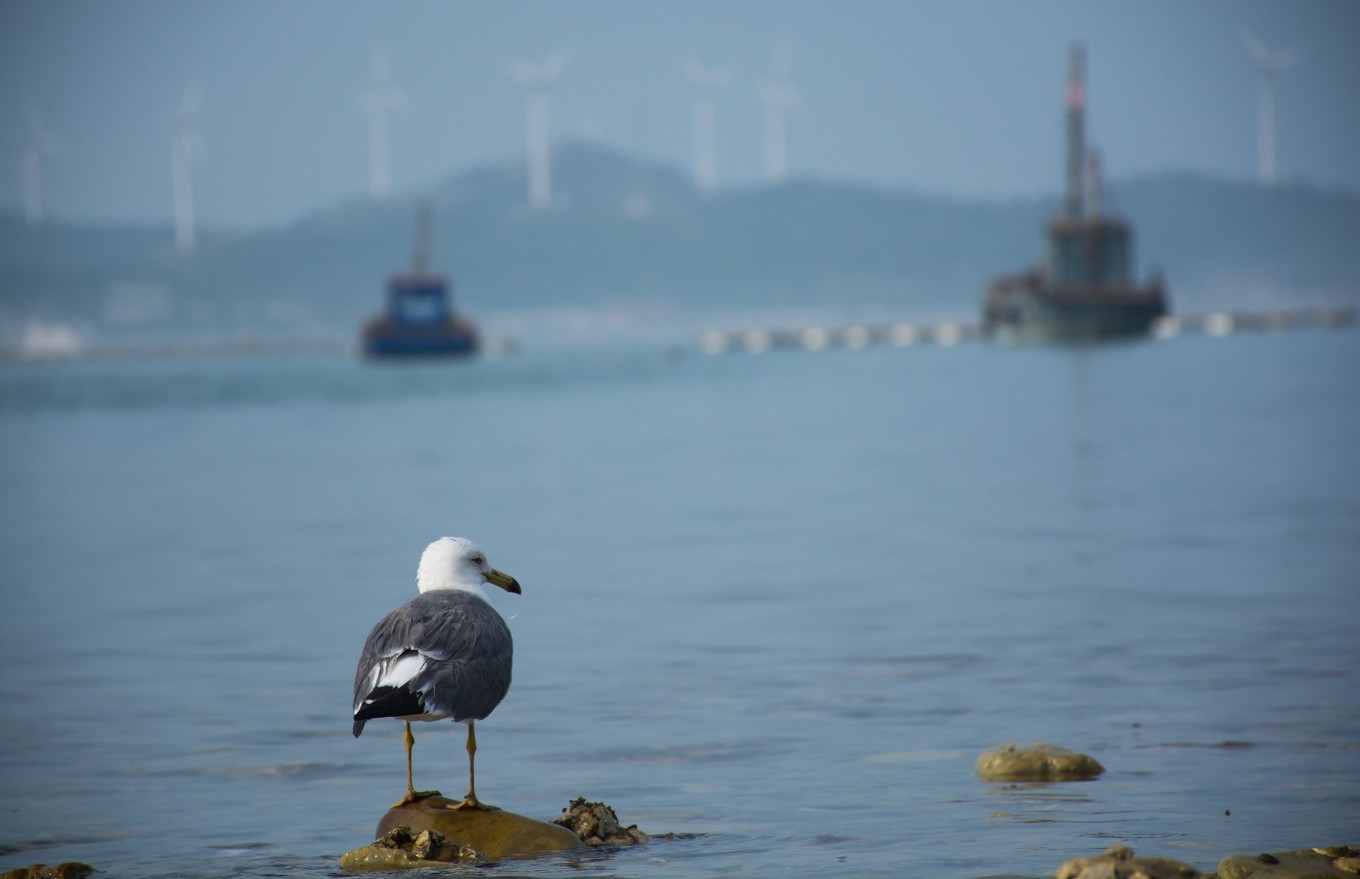 上面有很多海鷗覓食,休息
