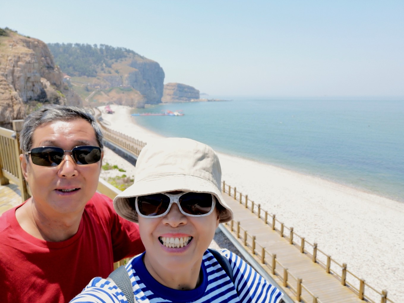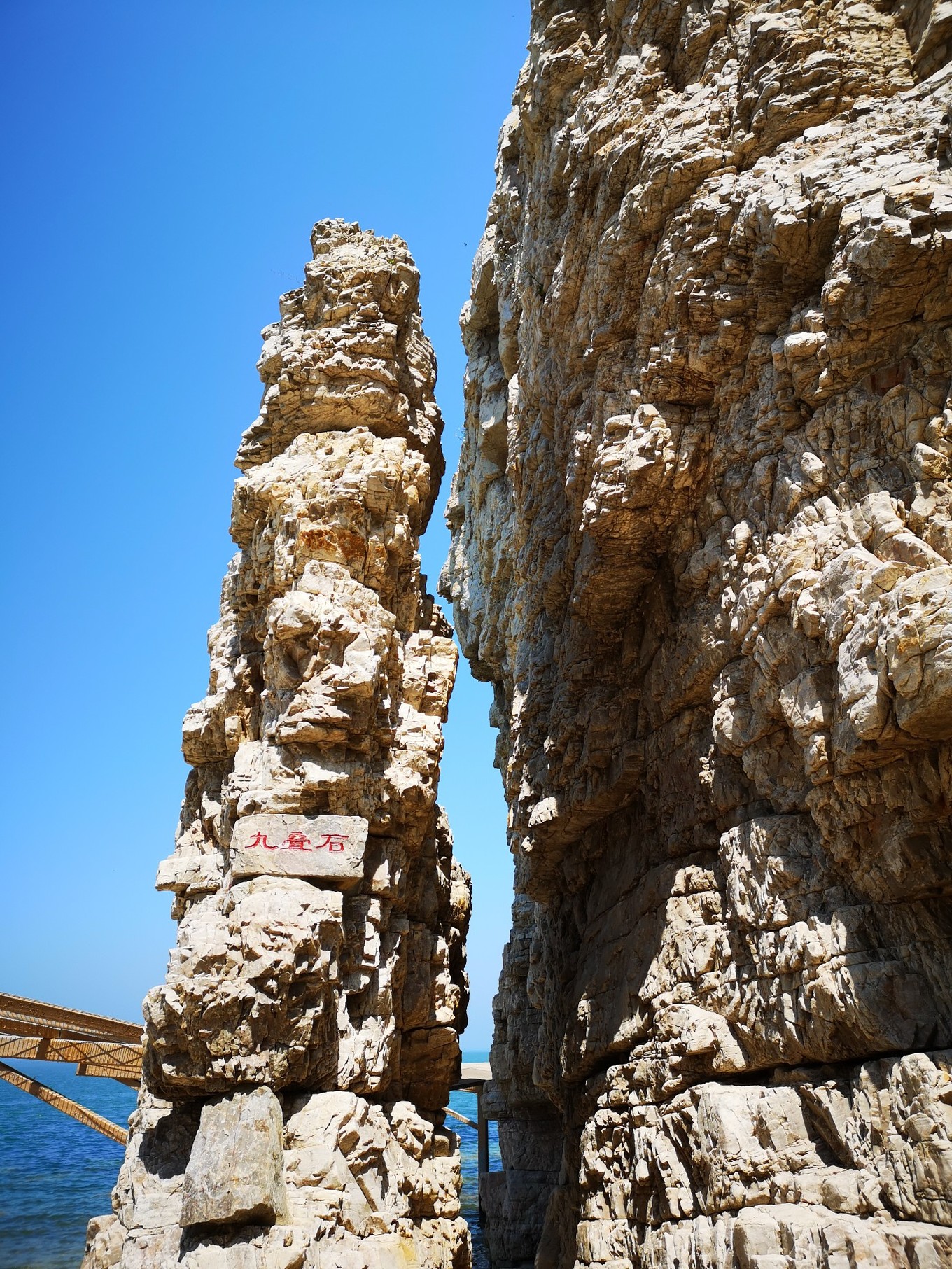 由于時間關(guān)系,我們包了一個車,只去了九丈崖和月牙灣。