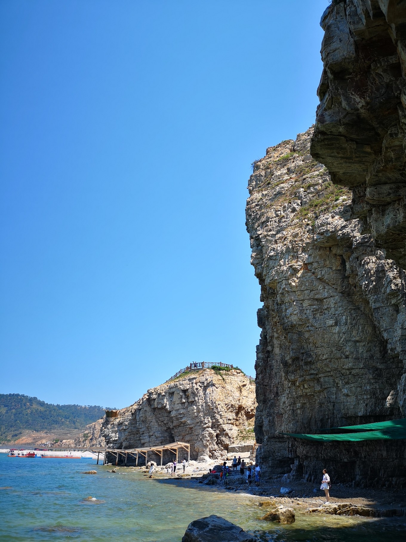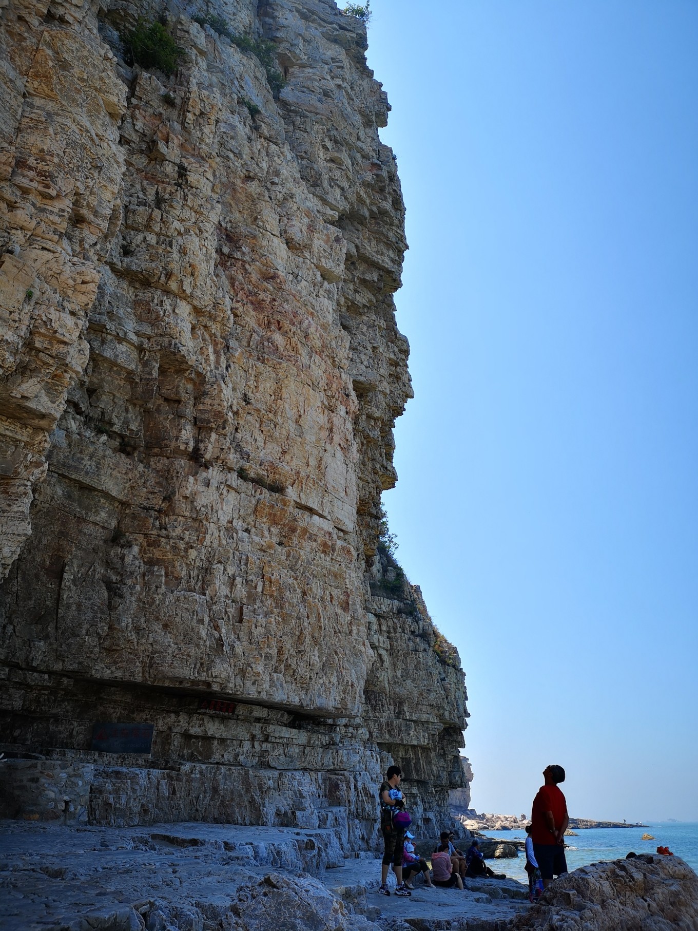 三崖,即石塔崖、九丈崖、龍盤崖。人在近70米的崖下顯得那么的渺小……