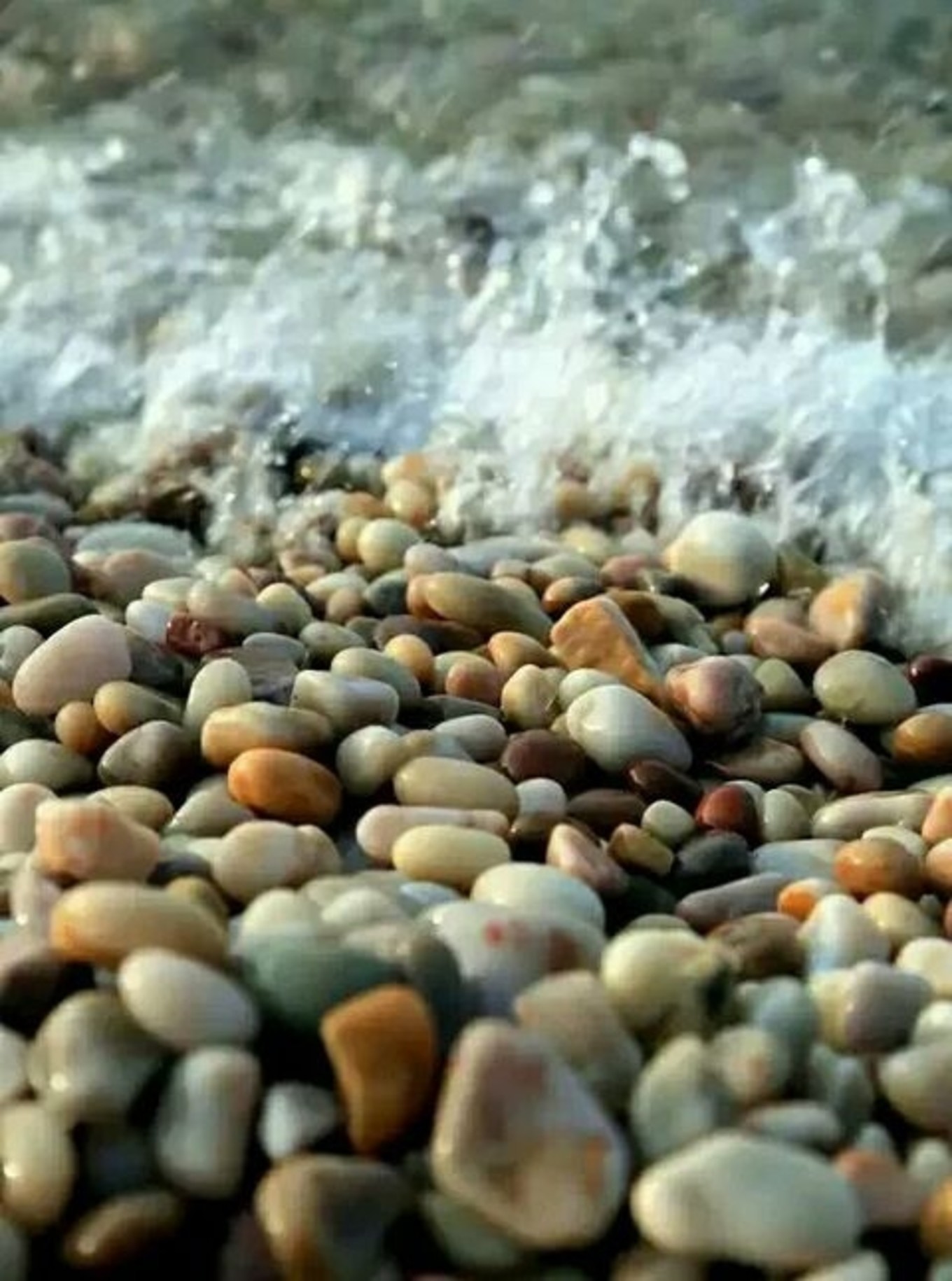 這里的海灘不是沙,而是獨(dú)有的圓石,踩在腳下,嘩啦啦地響……