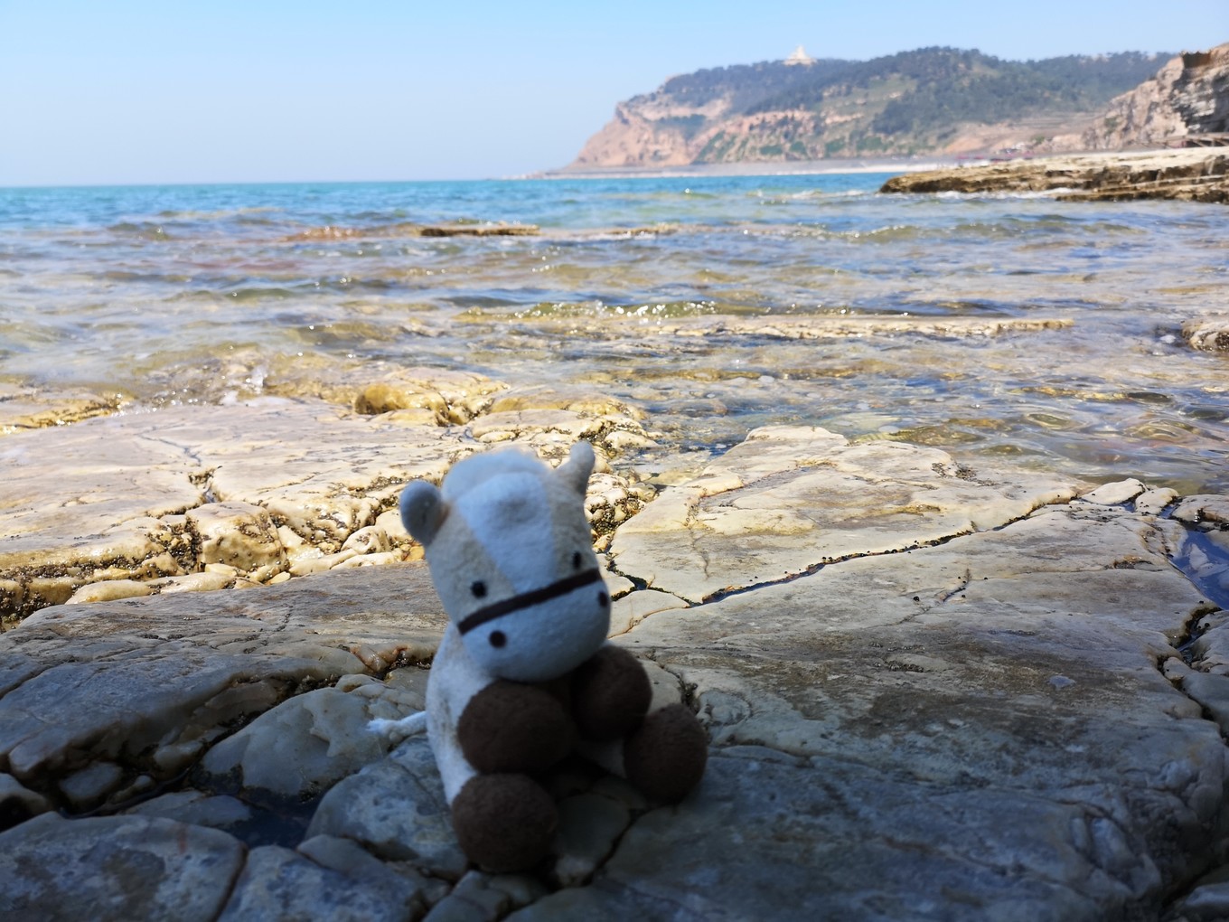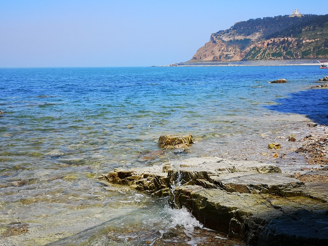 進(jìn)入景區(qū),首先映入眼簾的是大海,是海灣,是浸在海水中的五彩圓石。