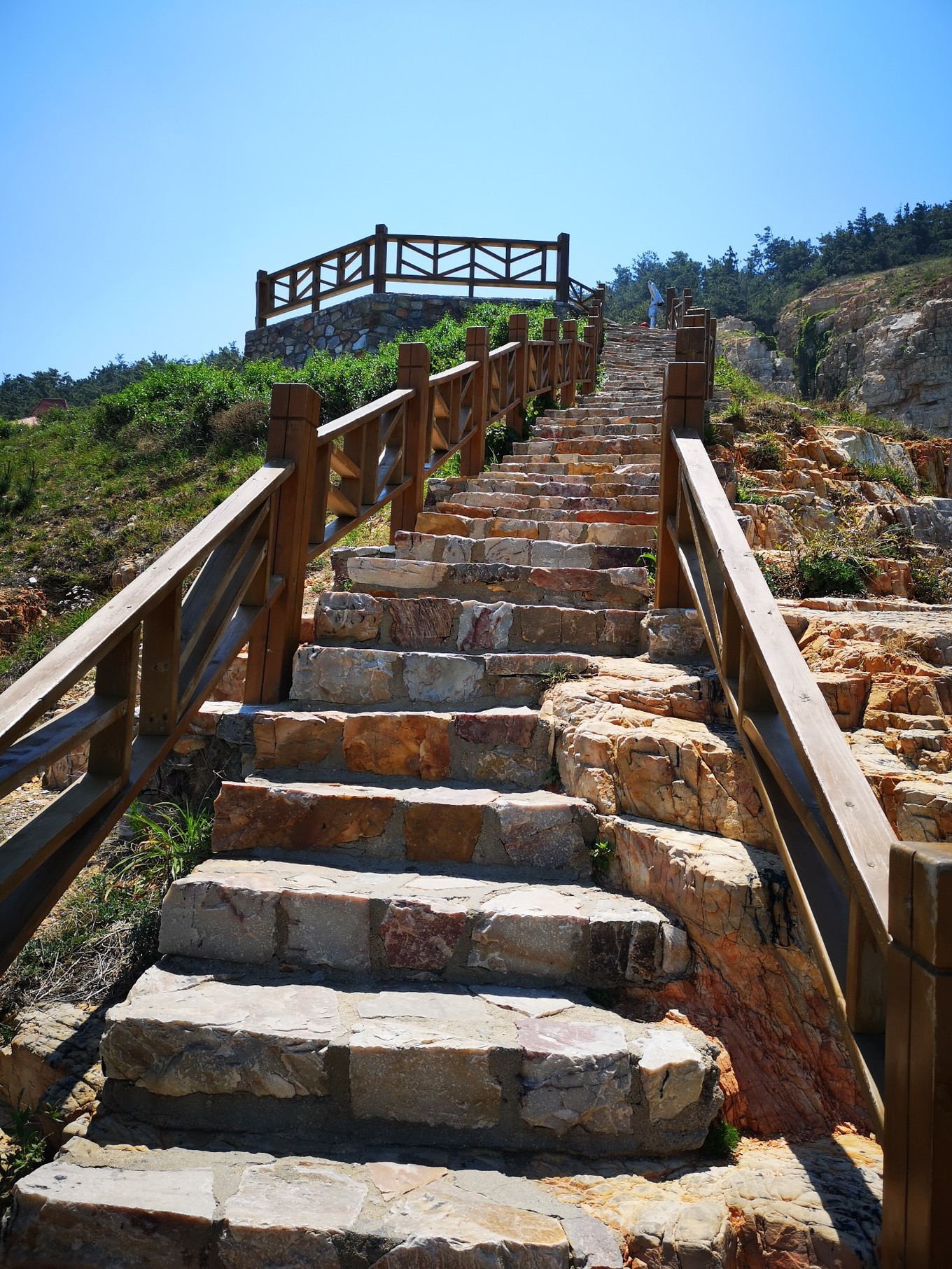 由觀景臺通往伊人冠的路,在遠(yuǎn)遠(yuǎn)的山上,可以感覺與天與海連在一起了。