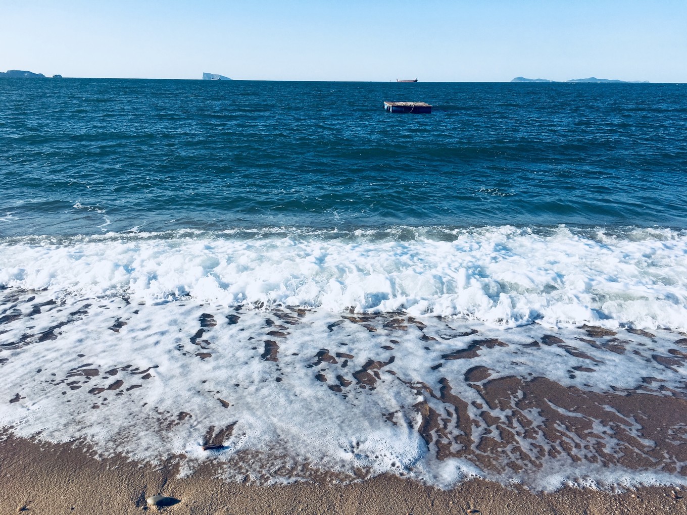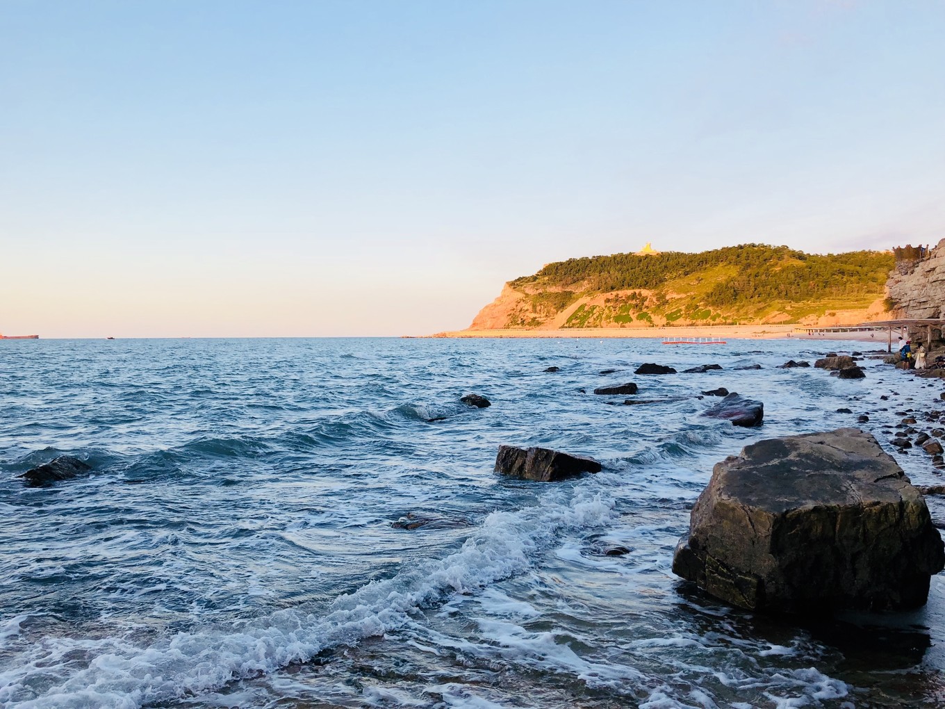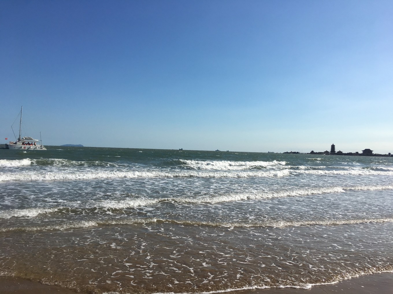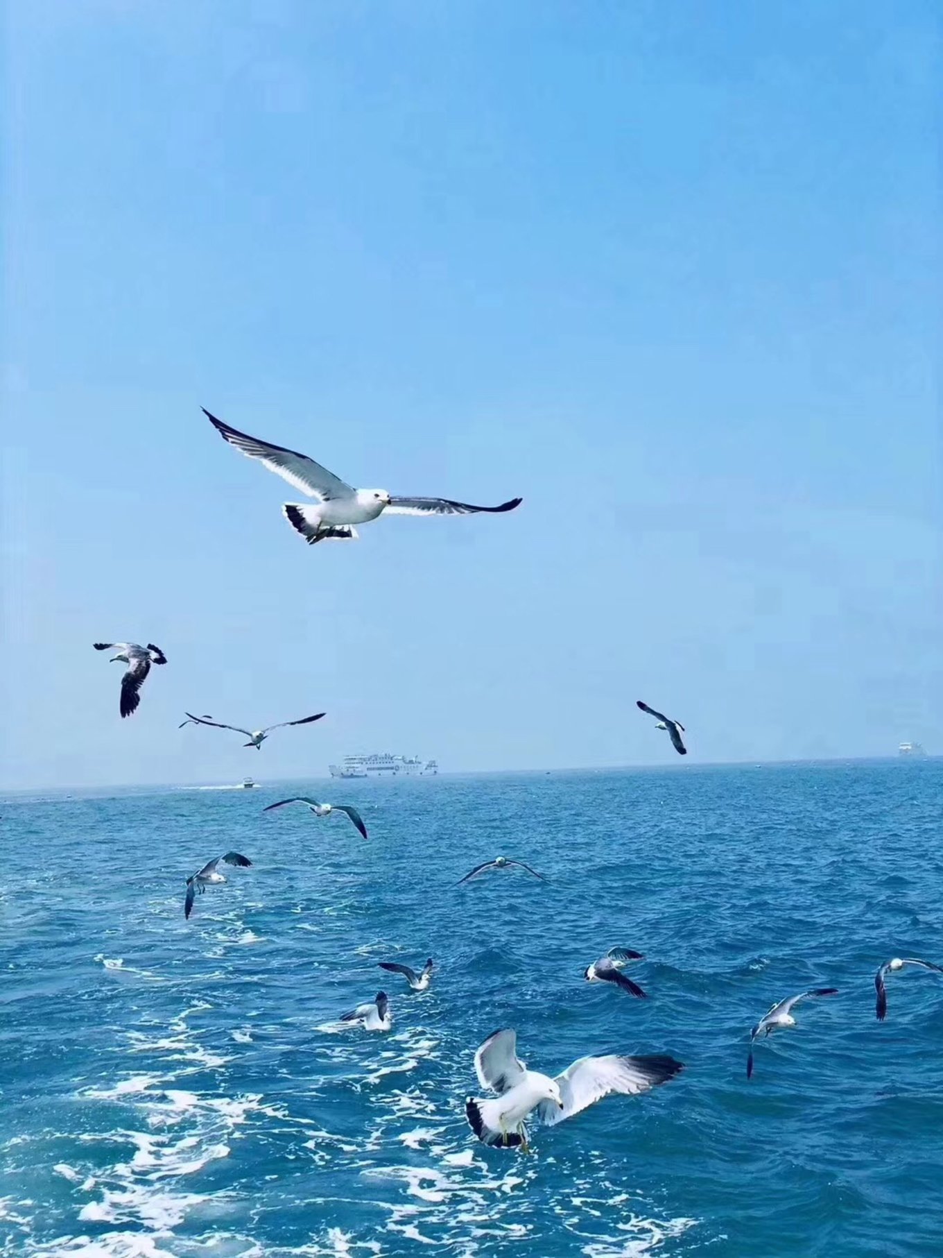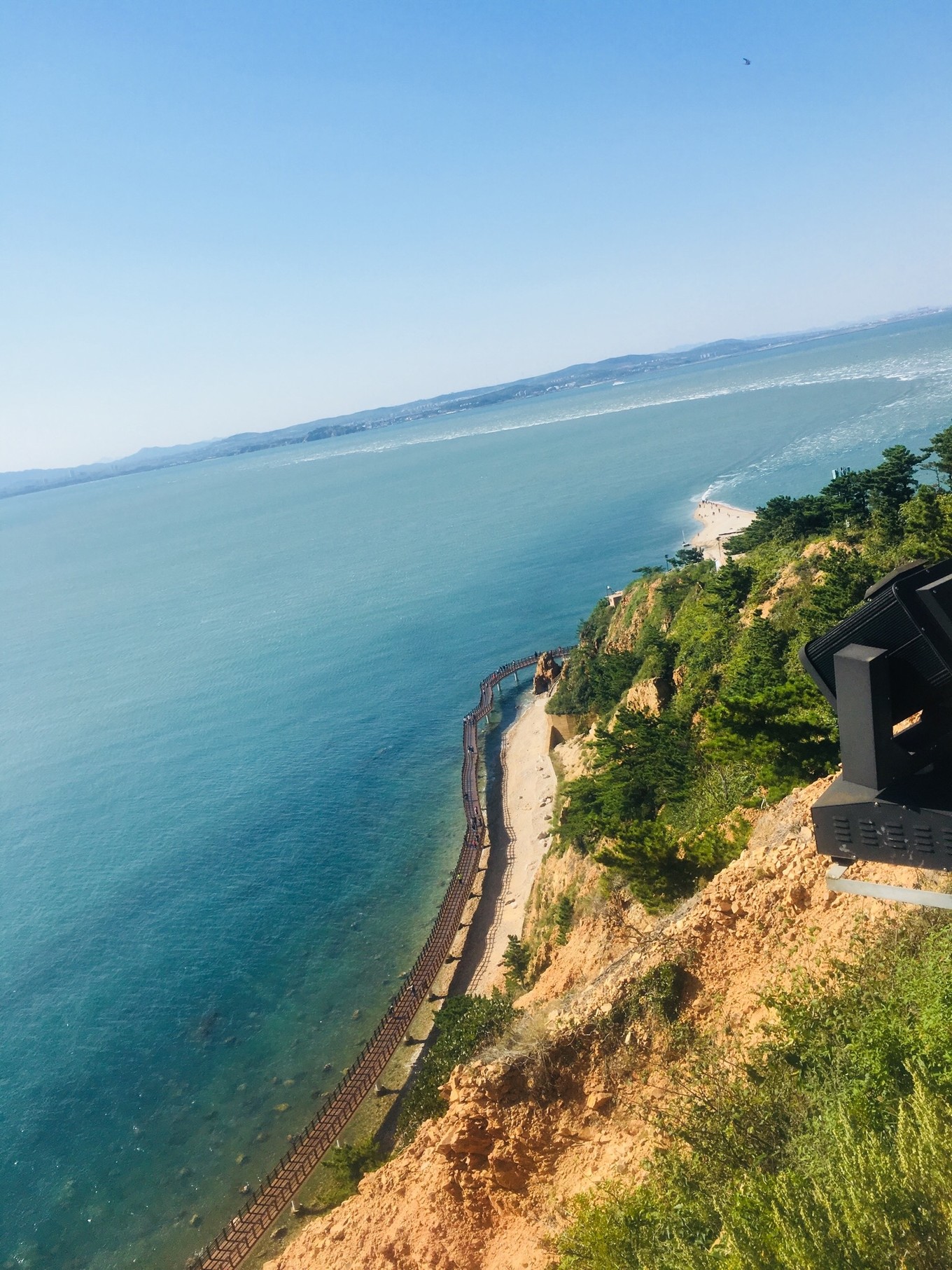 第三天-帆船??早上趕上了早一班的帆船,海鷗圍繞著帆,海風(fēng)拍打著浪,波光粼粼的海面,陽光照的讓人覺得很舒服,兩岸是蓬萊閣和八仙洞,聽說了很多神話故事。船開到海中心,黃渤海的交界處,黃色和藍色的海水銜接著,這可能就是“一腳踏兩海,兩耳聽雙濤”的即視感吧。