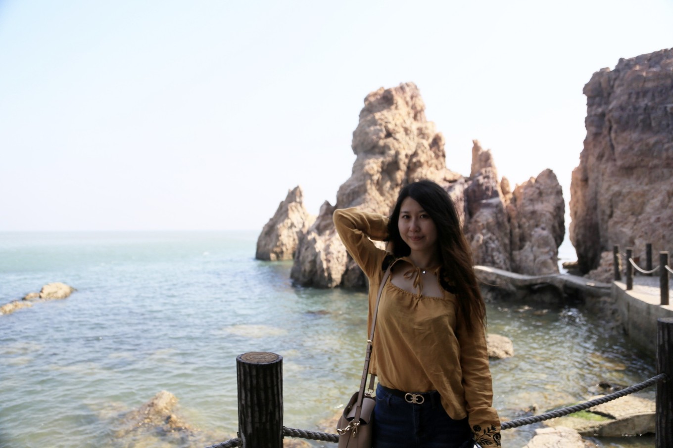 九丈崖離月牙灣很近。到了下午4、5點(diǎn)的時(shí)候,會有很多的游客聚集在此。棧道旁的巖石中會有很多的小螃蟹,小魚。孩子們在找著,大人們來幫忙搬石頭。盡頭就會是非常好的日落觀賞點(diǎn)。