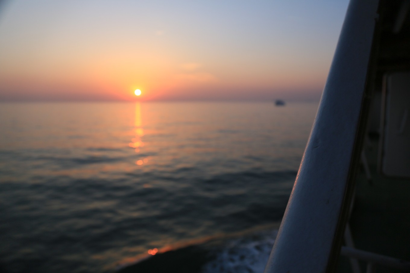 原本上,我們打算第一天就趕到九丈崖看日落,但是登船的時(shí)間著實(shí)晚了一些。當(dāng)然,并不遺憾,因?yàn)樵诖暇桶训谝淮蔚娜章淇戳恕?/p>
