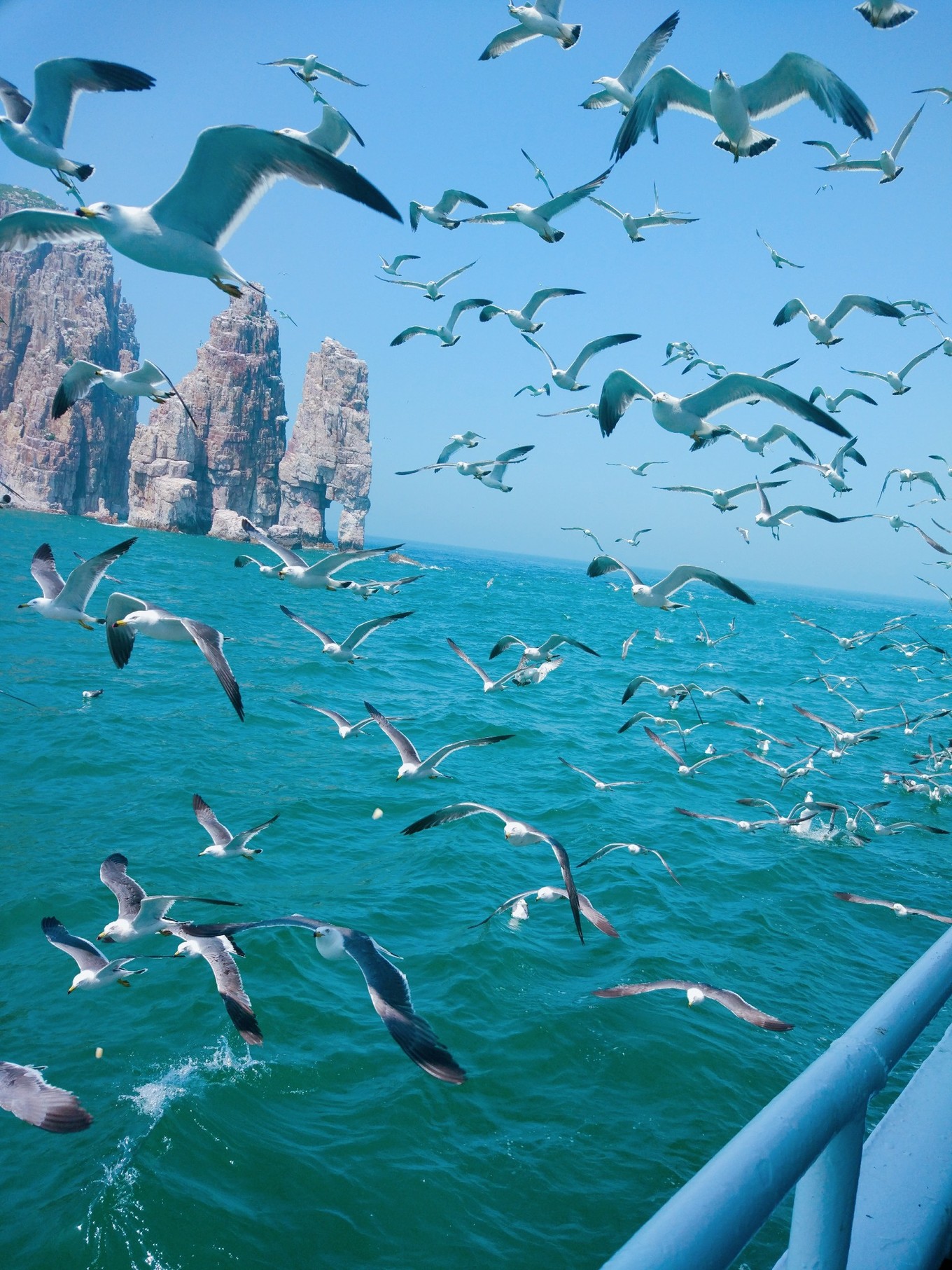 28號晚8點半到29號下午1點到煙臺,出站口旁邊就是去蓬萊的大巴,每人23/位,走國道100分鐘到蓬萊港,從蓬萊坐客船去長島港有40分鐘,蓬萊到長島票價45/位,上船后說一下(一般客船二樓和三樓要加錢,30-50一位,包廂也要加錢300不等,很多人為了看海鷗加錢去樓上,其實第二天上午去萬鳥島也可以看海鷗,還非常美非常多!這里坐船就沒必要多加錢了?。?br />