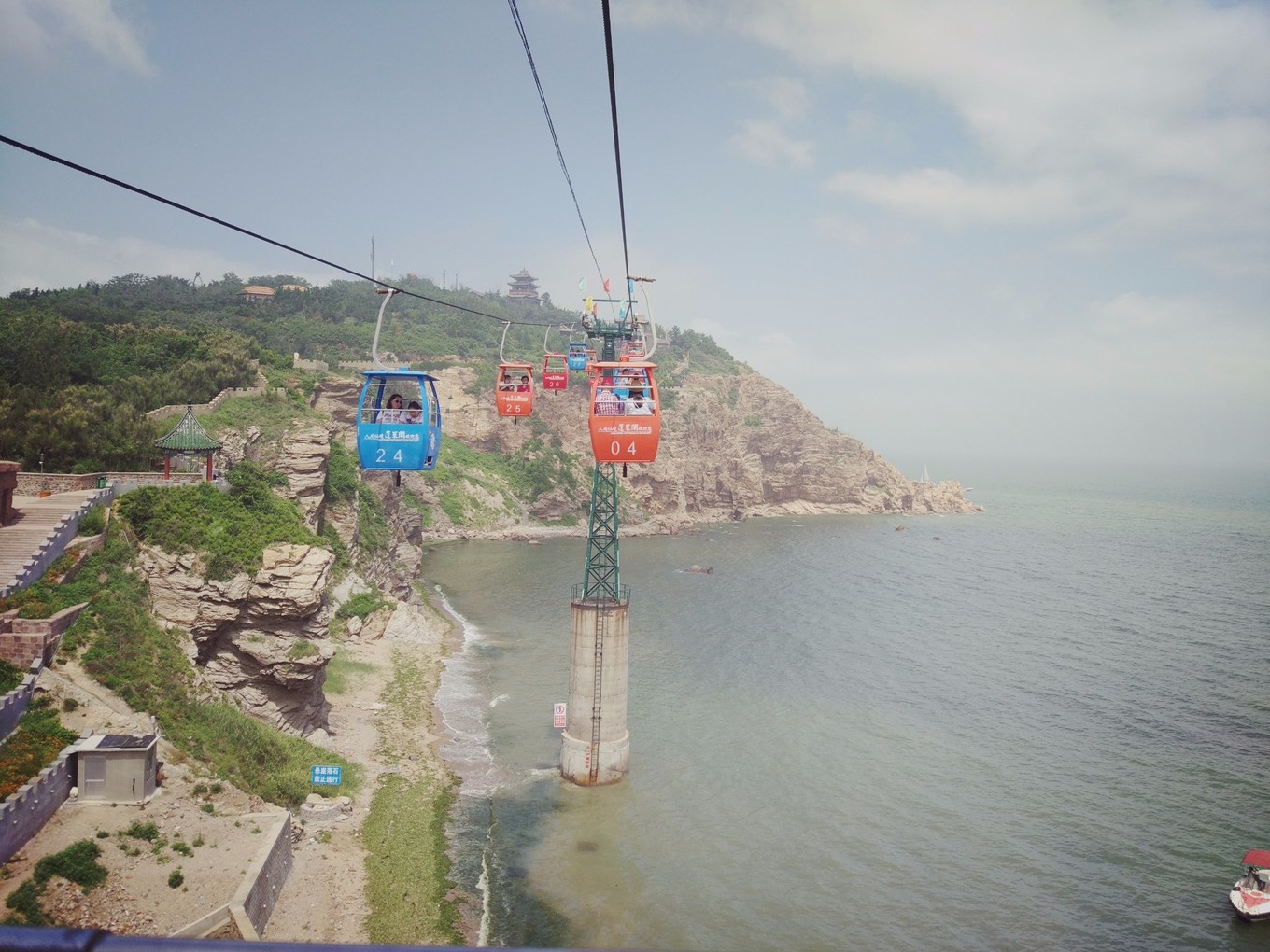 我們先去了長山尾,風(fēng)景真的很漂亮,可以看到黃海和渤海的交界線,后來走著發(fā)現(xiàn)路線好像不對,返回去做了纜車,全程的話是35/人,一共有3站,如果做一個站就是5元/人。干脆買了全程,到騰飛下車,上山,走臺階差不多十分鐘,一個巨大的雄鷹,本來是晴天,上山后就很多水霧,導(dǎo)致也看不到山下的風(fēng)景。