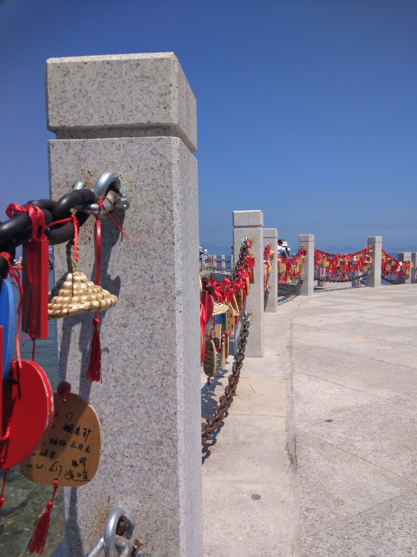 2,東炮臺下去就是月亮灣,可以掛鎖,掛吊牌,寫上祝福和祈禱,我覺得買鎖比較結(jié)實,很有紀(jì)念意義,吊牌都會被風(fēng)吹掉,鎖是風(fēng)雨無阻,買鎖的是明智之選!