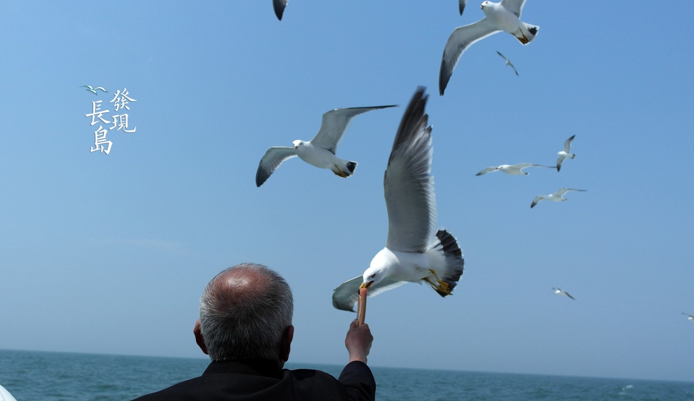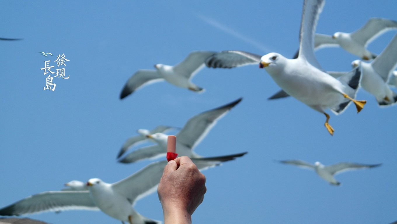 出發(fā)之前,自備了喂海鷗的火腿腸,這時(shí)候正好配上用場。一根火腿腸剝了皮,剛伸出去就被海鷗整根叼走了。有的海鷗比較膽小,在食物周圍盤旋了好久,確定安全以后,才會(huì)怯怯的張開嘴巴。