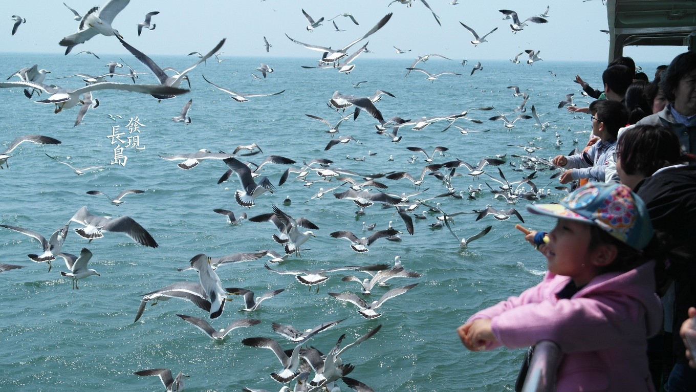去萬鳥島的游船每天上午和下午都有班次(節(jié)假日可能會(huì)有所調(diào)整,具體咨詢客棧前臺(tái)),我們坐的是十點(diǎn)半的游船。從長島碼頭到萬鳥島大概需要一個(gè)半小時(shí),但一路上風(fēng)景很漂亮,可以在船上看到海豹礁、猴磯島、寶塔礁。一路航行在大海上,陸地一點(diǎn)點(diǎn)遠(yuǎn)去,有種心情被放空的感覺。有很多海鷗一直跟著游船飛舞。離萬鳥島越來越近,海鷗也變得多了起來。