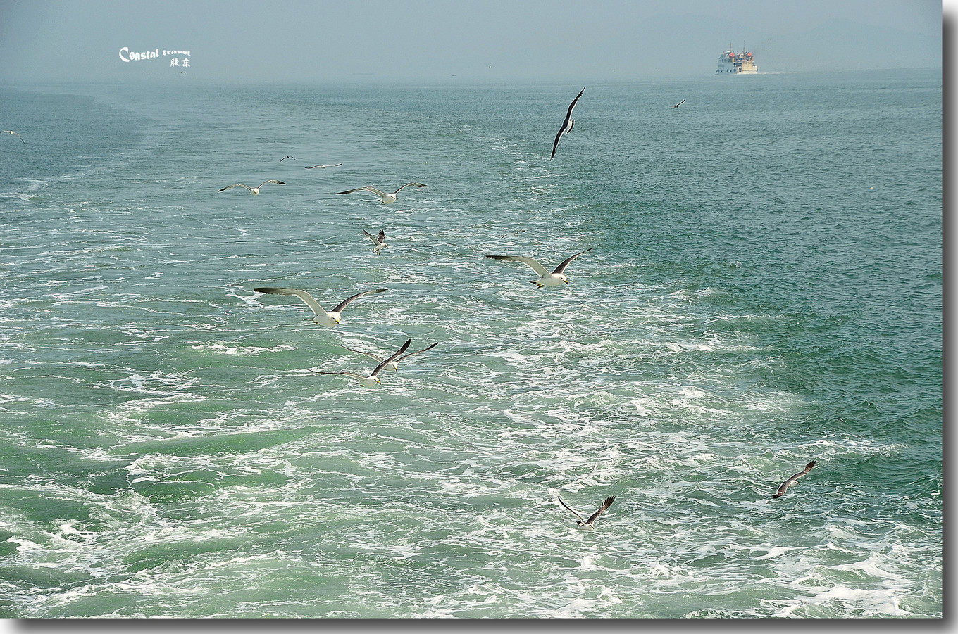 今天目的地是煙臺。早餐后去碼頭,想起昨天沒有拍月牙灣的全景,找到一個(gè)高處拍了下它美麗的曲線。