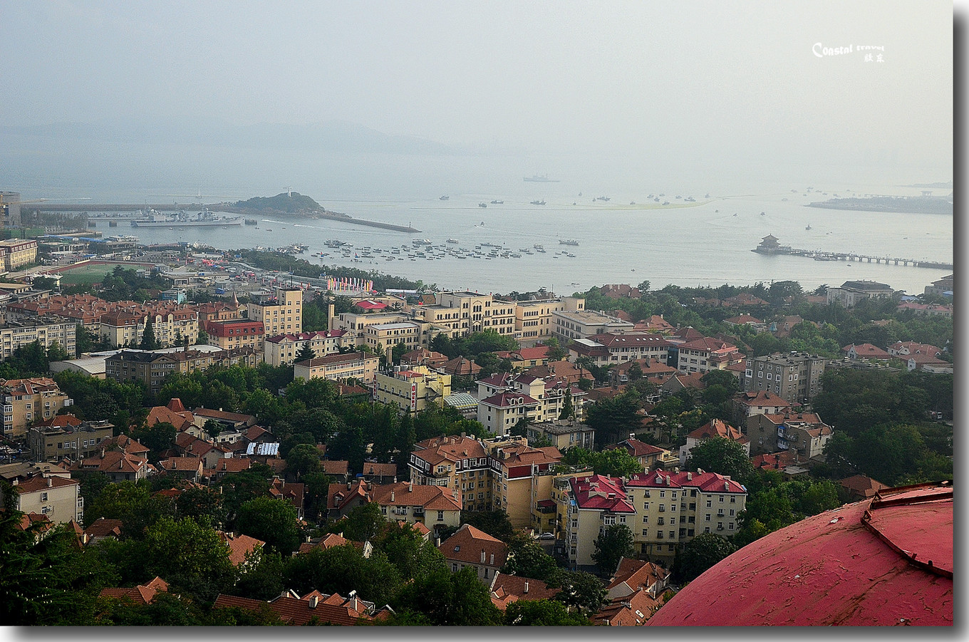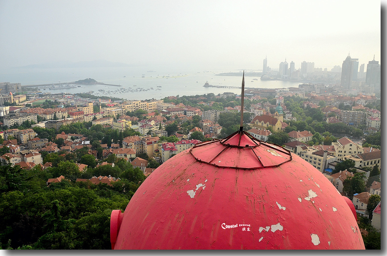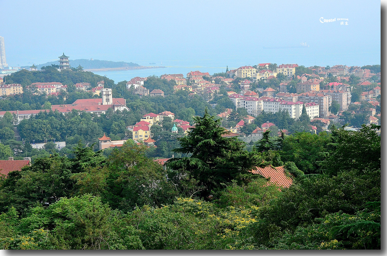 信號山可以看青島的全景,最上面有一個(gè)旋轉(zhuǎn)觀景臺,可以舒服的坐著看青島全景,滿眼蔥綠與各色的屋頂很美