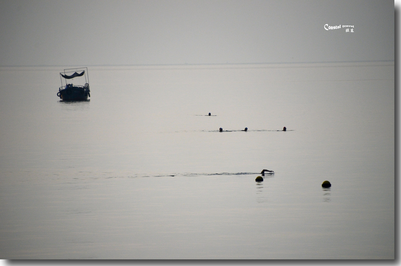 海上一片灰蒙蒙的,早起游泳的人們早已往回游了,看著陸續(xù)上岸游泳的人居然以老年人為多。