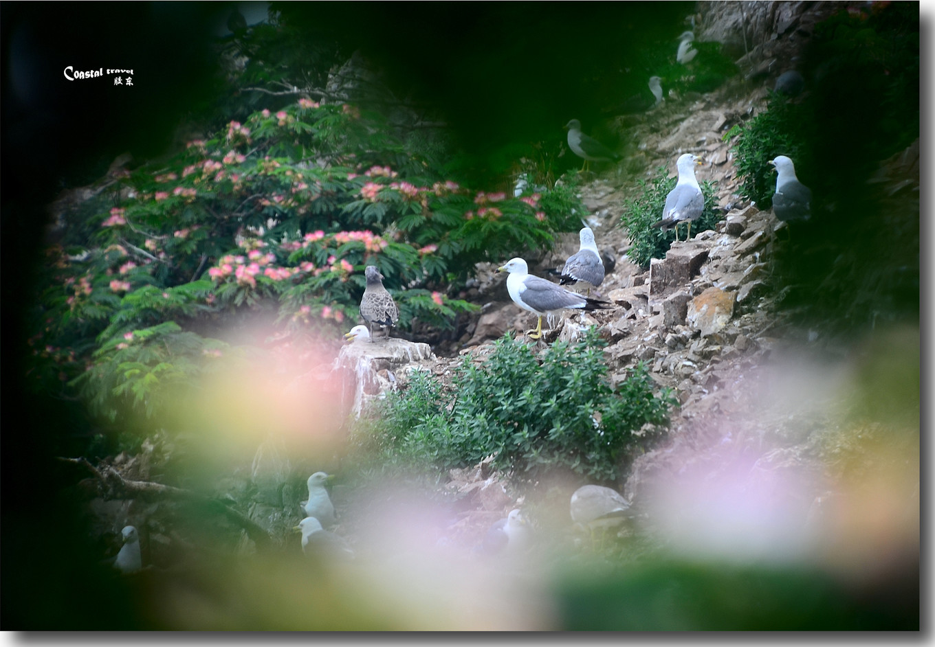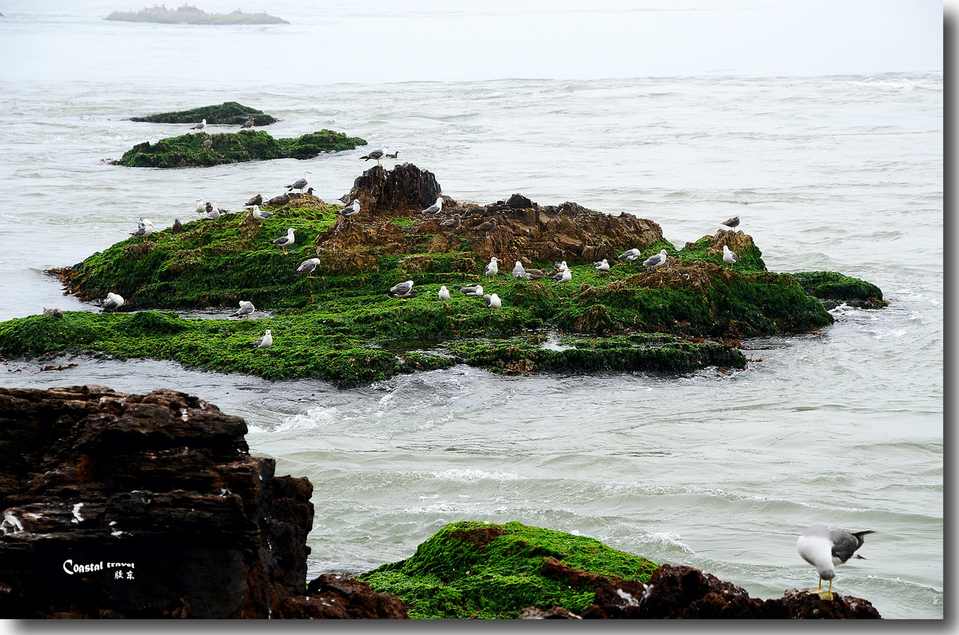 沿島修筑了一圈棧道,海岸被礁石分割成一段段,每段都到處是海鷗