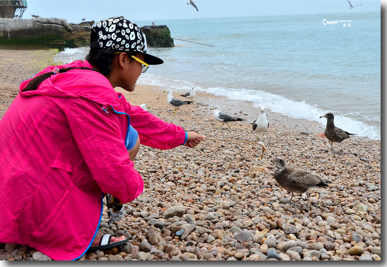 中午依舊回漁家吃海鮮大餐,再美美的睡個(gè)午覺,不上班的日子真好呀!睡美了起床去月牙灣,月牙灣的球石很有名,所以也導(dǎo)致岸邊的球石幾乎都消失了。廣播和警示牌上都寫著球石屬國家資源,禁止人撿等等。天涼也不能下水,趟過一片海水到另外一片都是大塊石頭的岸上,石頭翻起來下面都是小螃蟹。