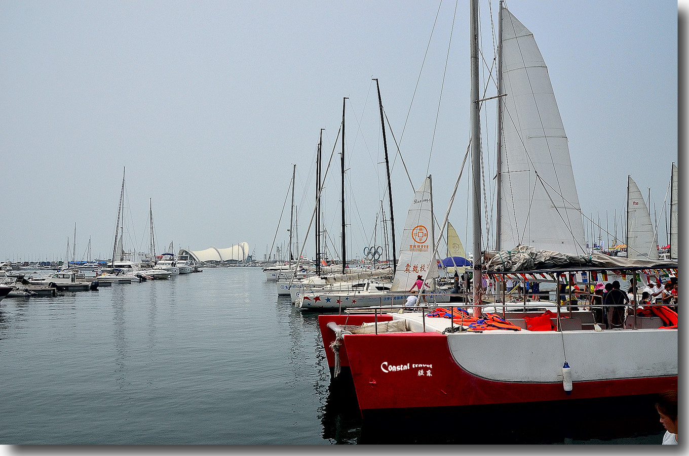 今天繼續(xù)青島閑逛,第一站奧帆中心,奧帆中心據(jù)五四廣場很近,遠(yuǎn)處是五四廣場的大火炬,今天濕度更大,遠(yuǎn)處高樓上面都籠罩著一層霧
