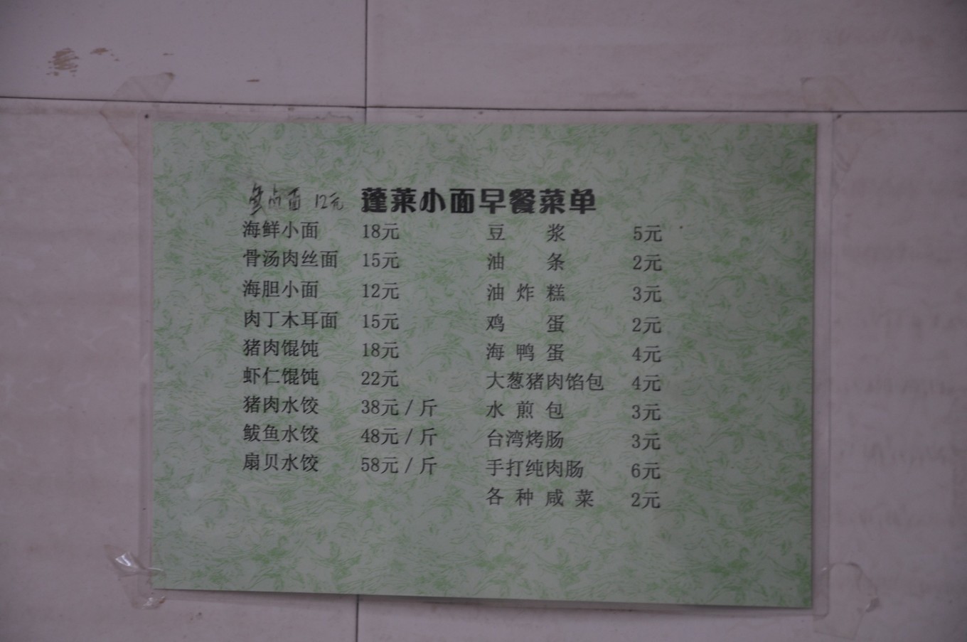 這是蓬萊小面早餐菜單,供參考~就在長(zhǎng)島而言,這家蓬萊小面,還是比較推薦的。但店面不大,衛(wèi)生條件,個(gè)人感覺(jué)也是一般般,如果是追求品質(zhì),建議可以略過(guò)~