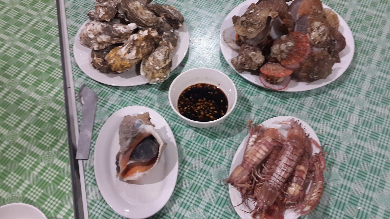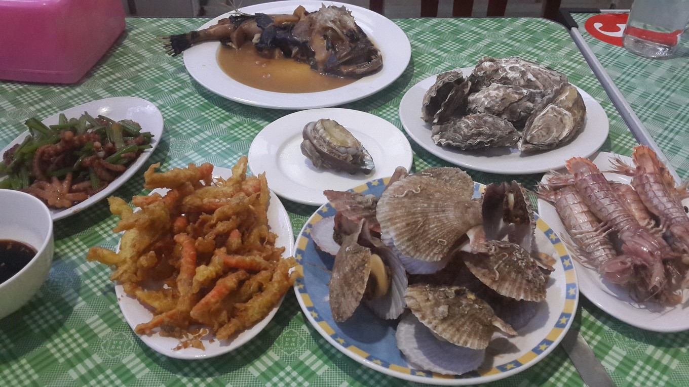 回到漁家樂,發(fā)現(xiàn)又多了一對來自南京的夫妻。。吃飯的時候人多就是熱鬧,大叔還專門唱歌互動調(diào)動氣氛。。大家還一起合唱,棒棒噠!席間大家愉快的聊天,北京的三口人因沒有看到夕陽很是失落并決定明天早起看日出,有位北京的阿姨說她一直沒看到日出,每次去都有霧啥的,很是郁悶。