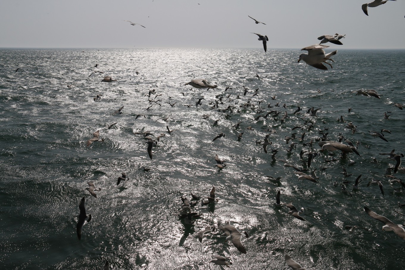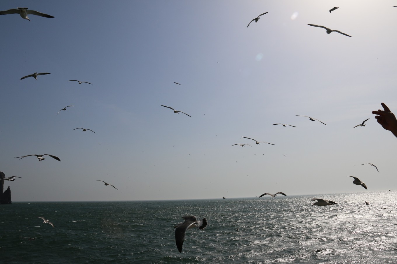 萬鳥島大叔送了8包方便面喂海鷗,我覺得有點(diǎn)多,他堅決讓我拿著,說是之前的客人拿的都覺得有點(diǎn)少,而且在船上買的話就會貴,10塊錢3包。在船上還認(rèn)識了王晨姐一家四口,兩個漂亮可愛的小寶貝。。