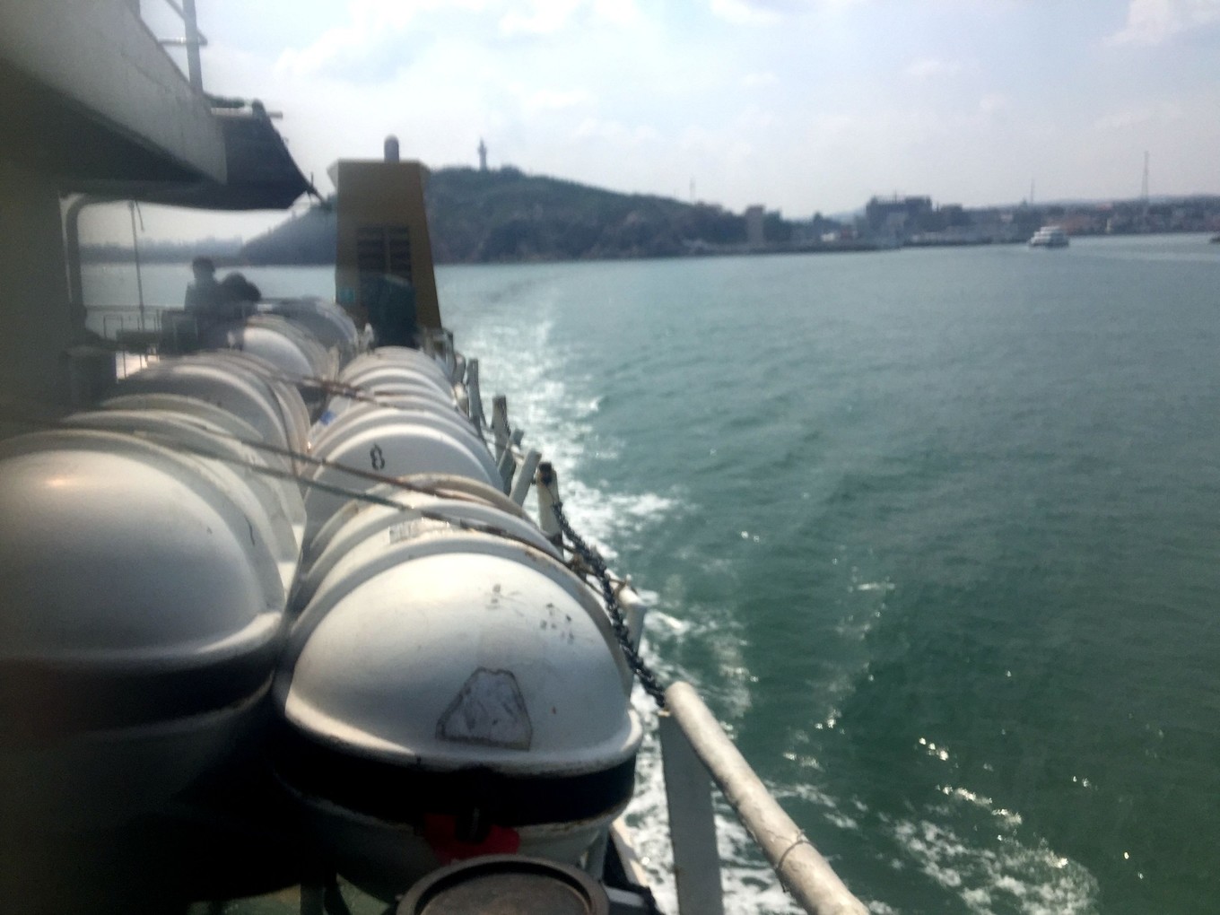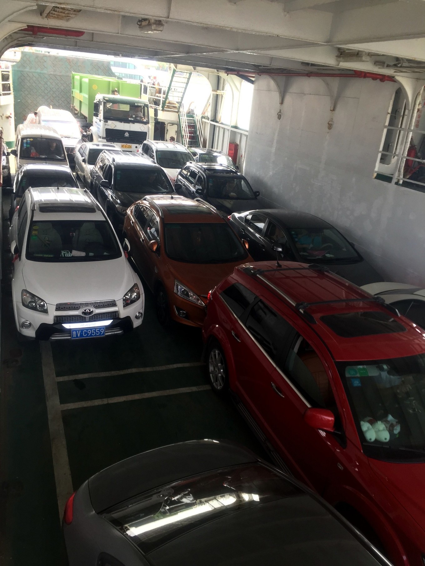 第一次親眼見到車下船,還是挺新鮮的,我們排在車后面,還不能插隊(duì)