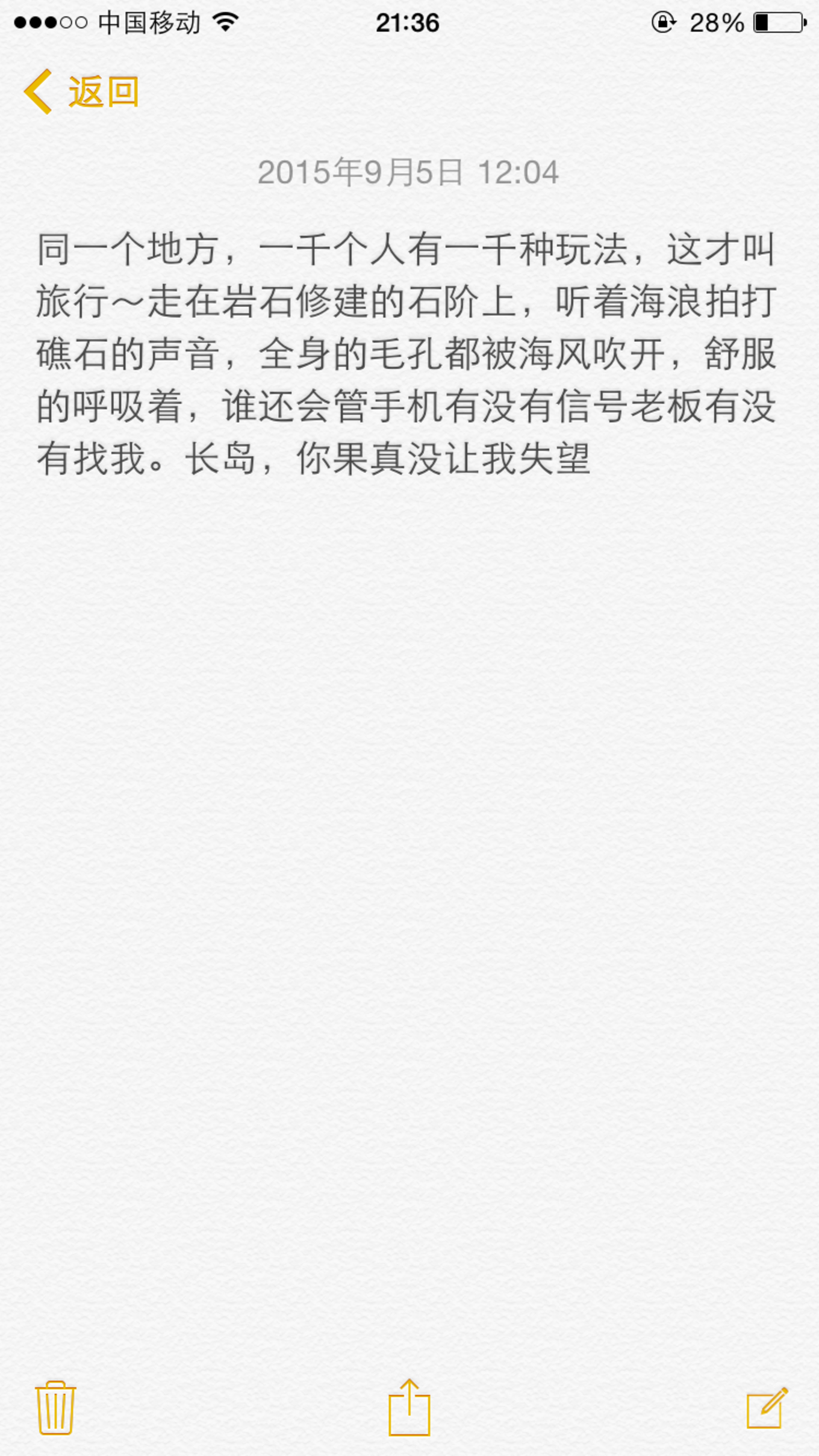 八月底到九月初連著出差,心煩躁的不行,好容易有三天休息,想來場(chǎng)說走就走的旅行,結(jié)果查機(jī)票車票酒店,哪哪都是人。于是想到了轟轟說的長(zhǎng)島,好歹離家近。一個(gè)人就一個(gè)人吧,買張去煙臺(tái)的高鐵票,走著