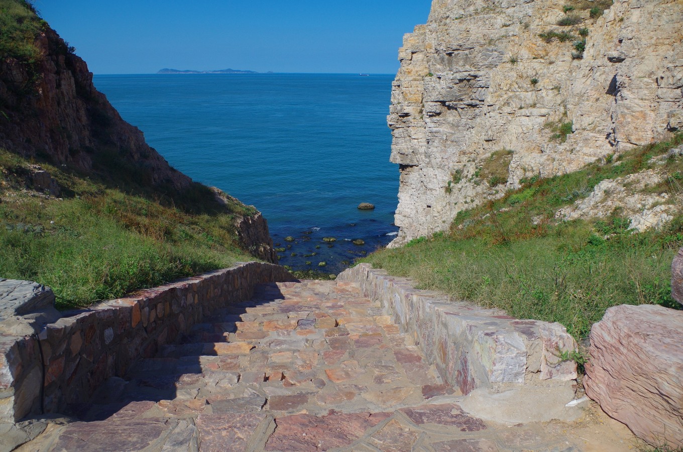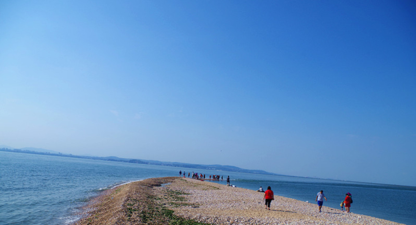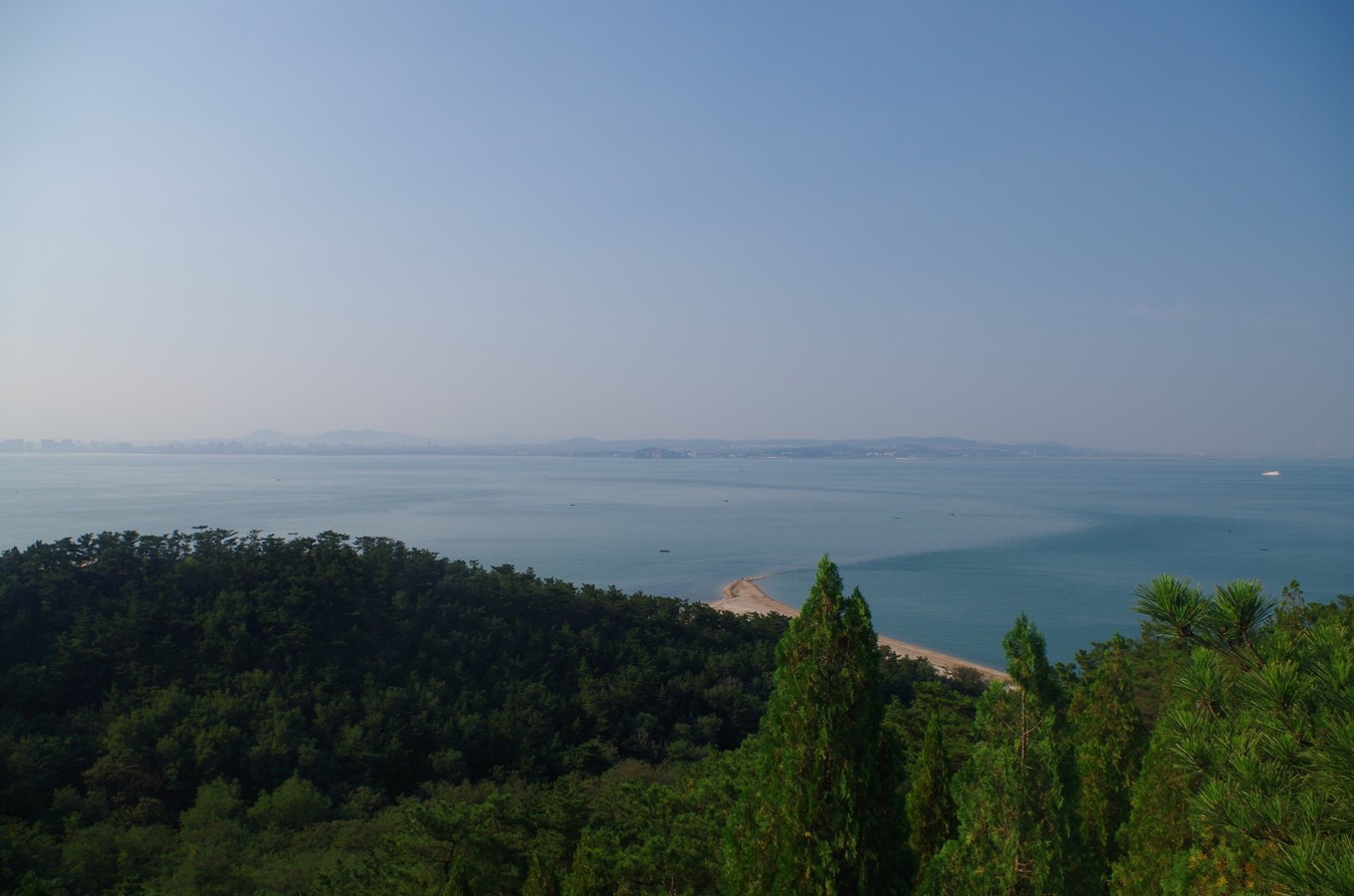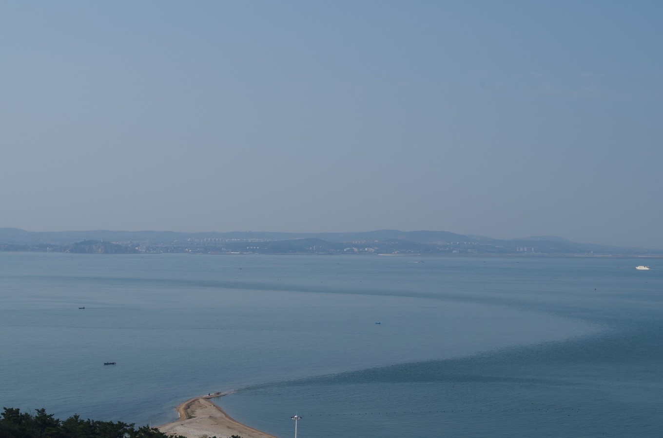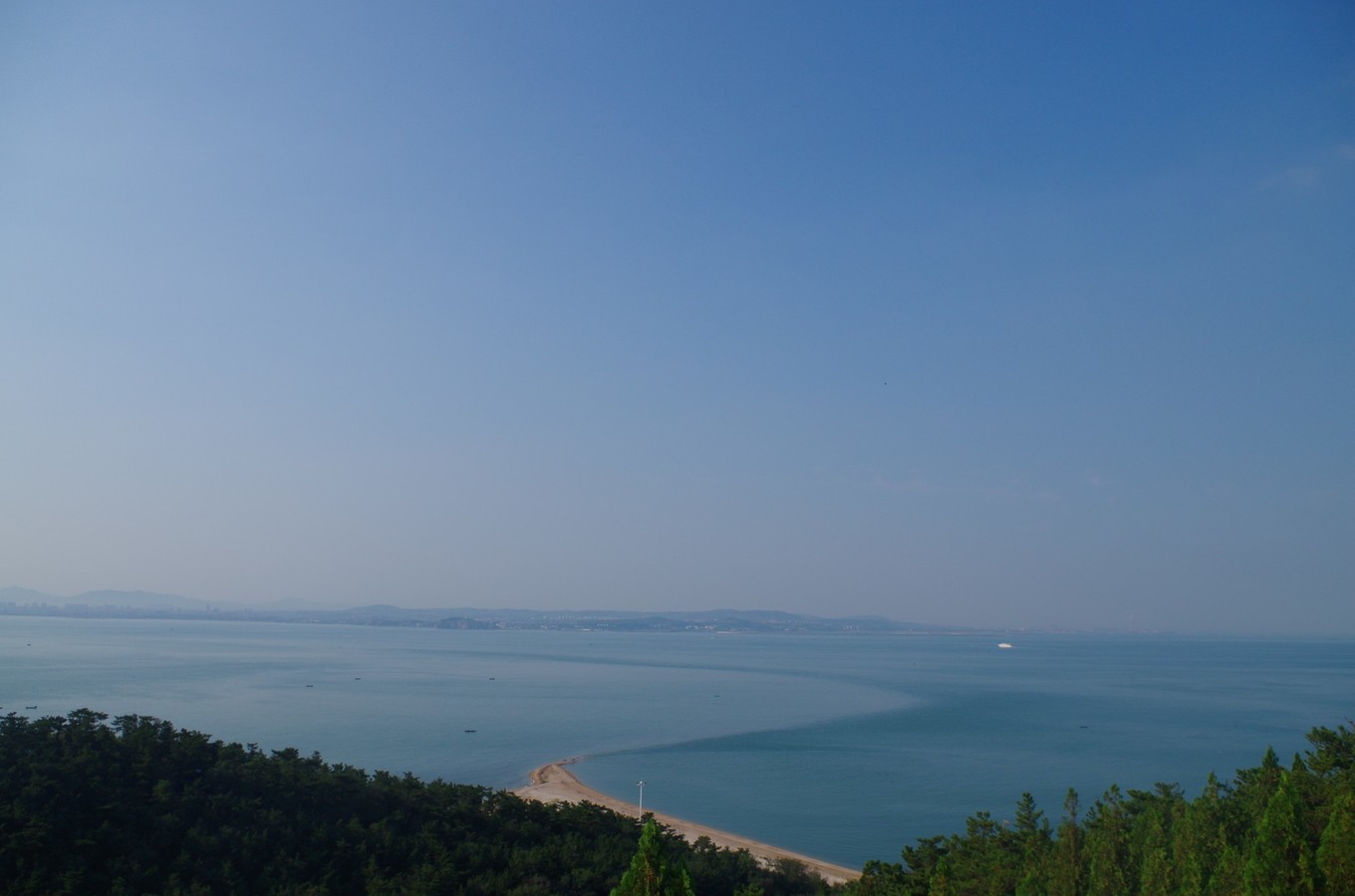 就是在高處看黃渤海交匯處那一點點深入海里的小尾巴