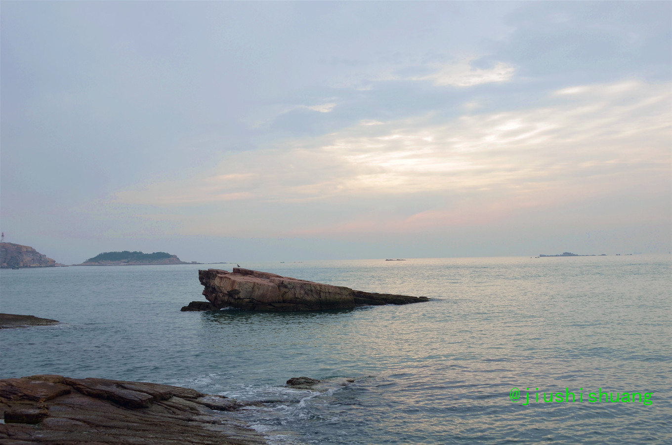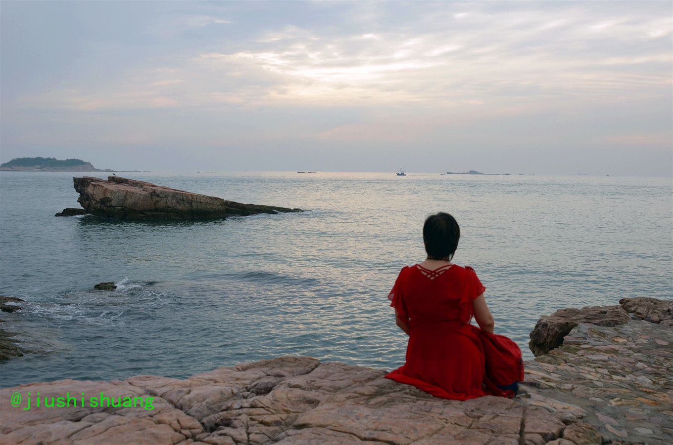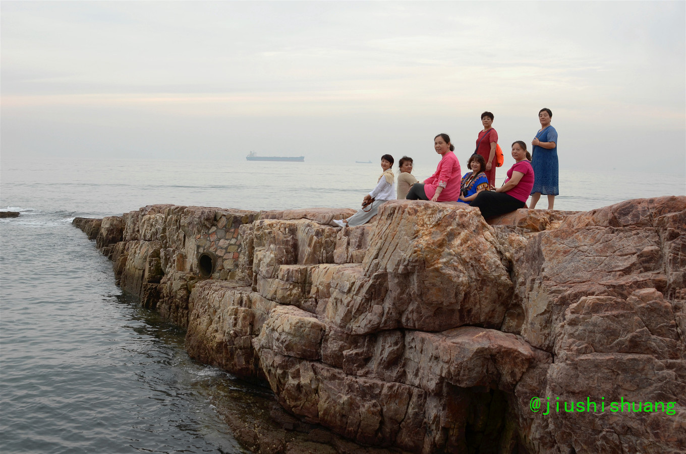 九丈崖在長(zhǎng)島最西北邊,是觀日落的絕佳景地,我們沒(méi)有看到九丈崖日落,一道(珍珠隧道)也沒(méi)有玩,姐妹們就想坐在石頭上,看著渤海海面上突出的礁石,靜靜地呆坐遐想......