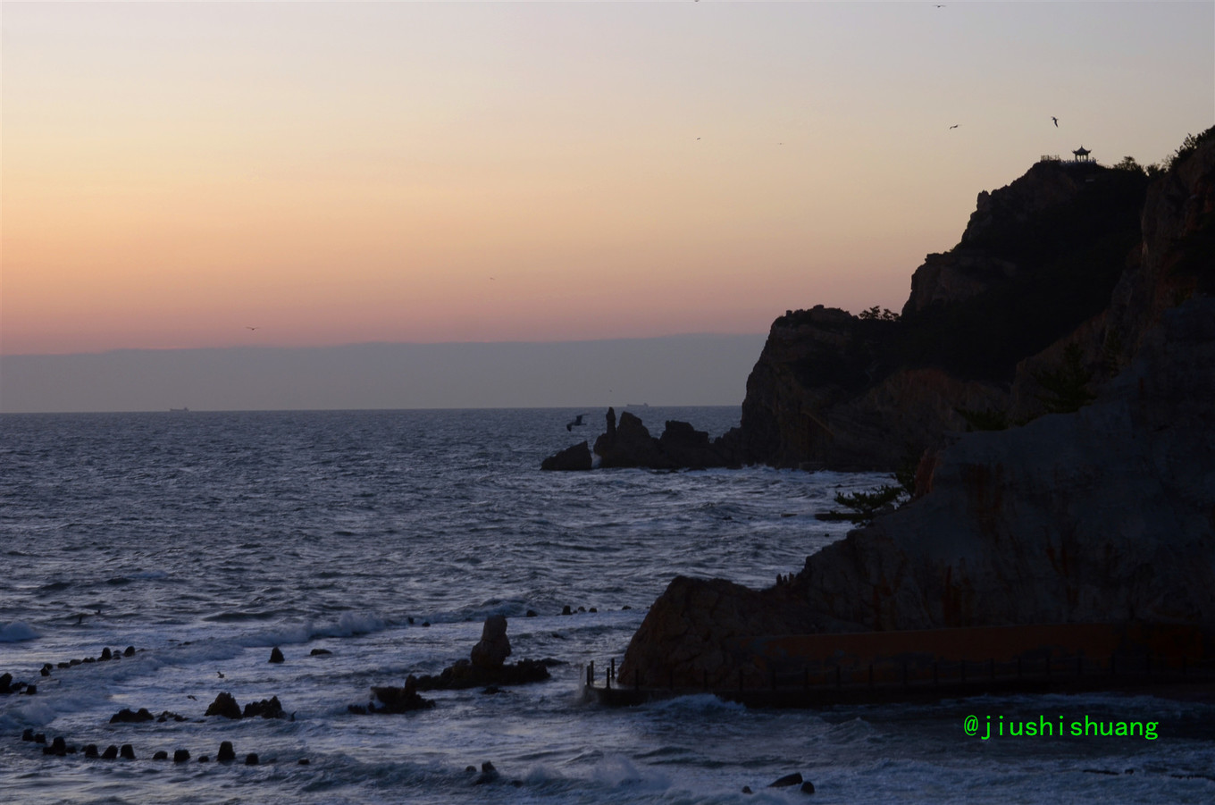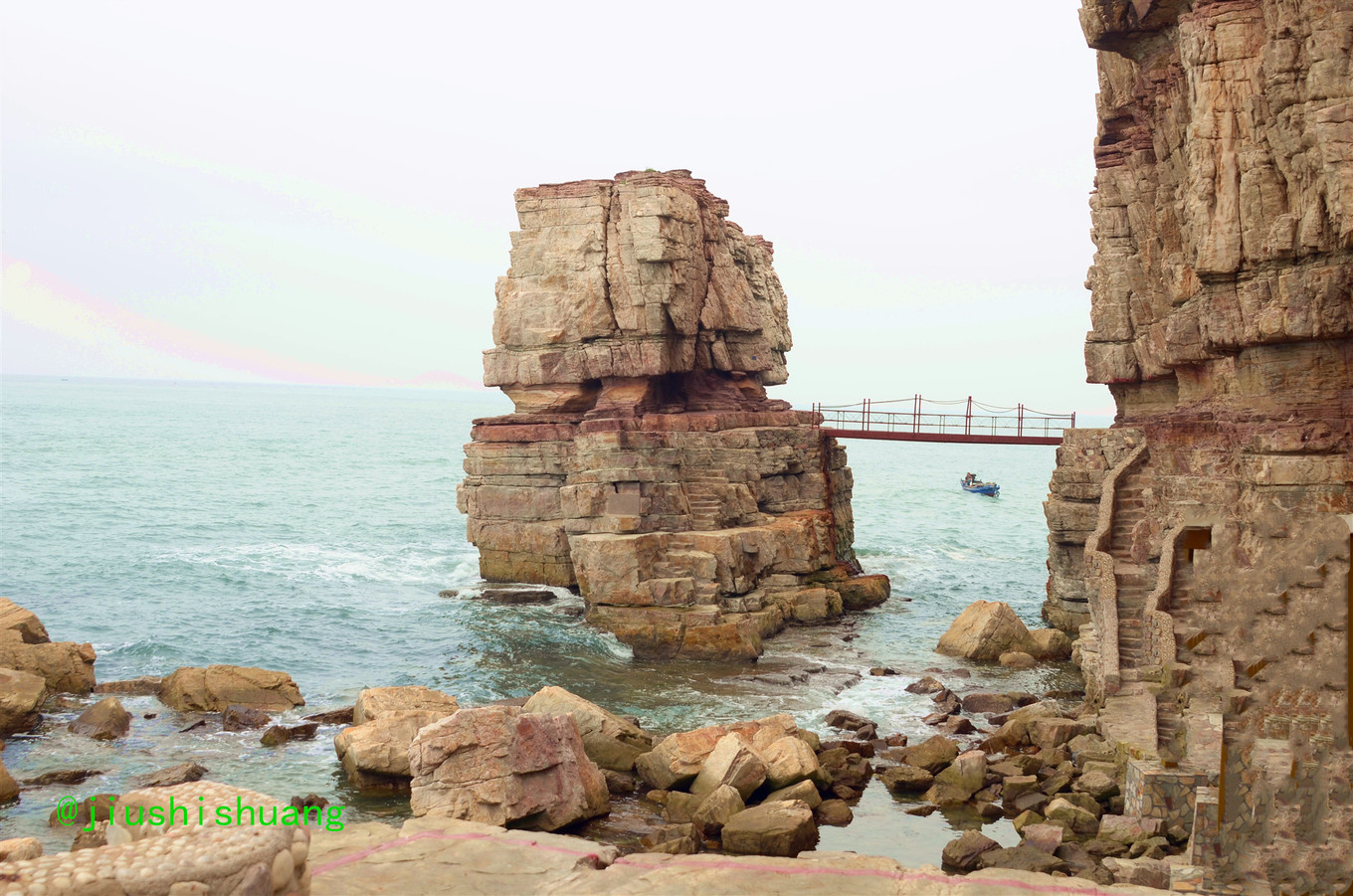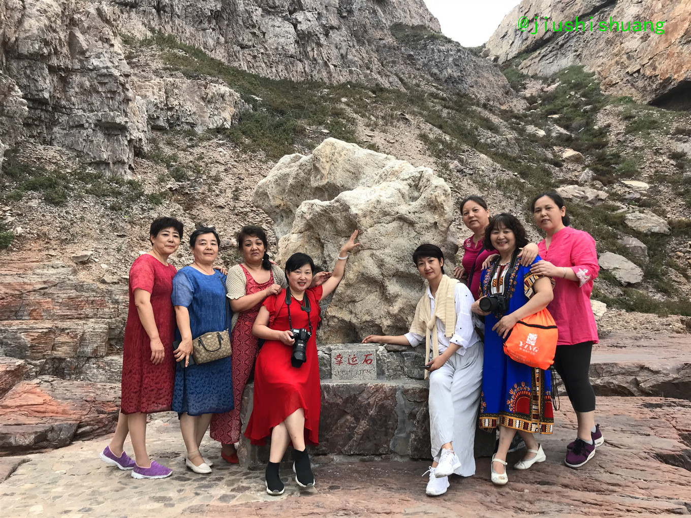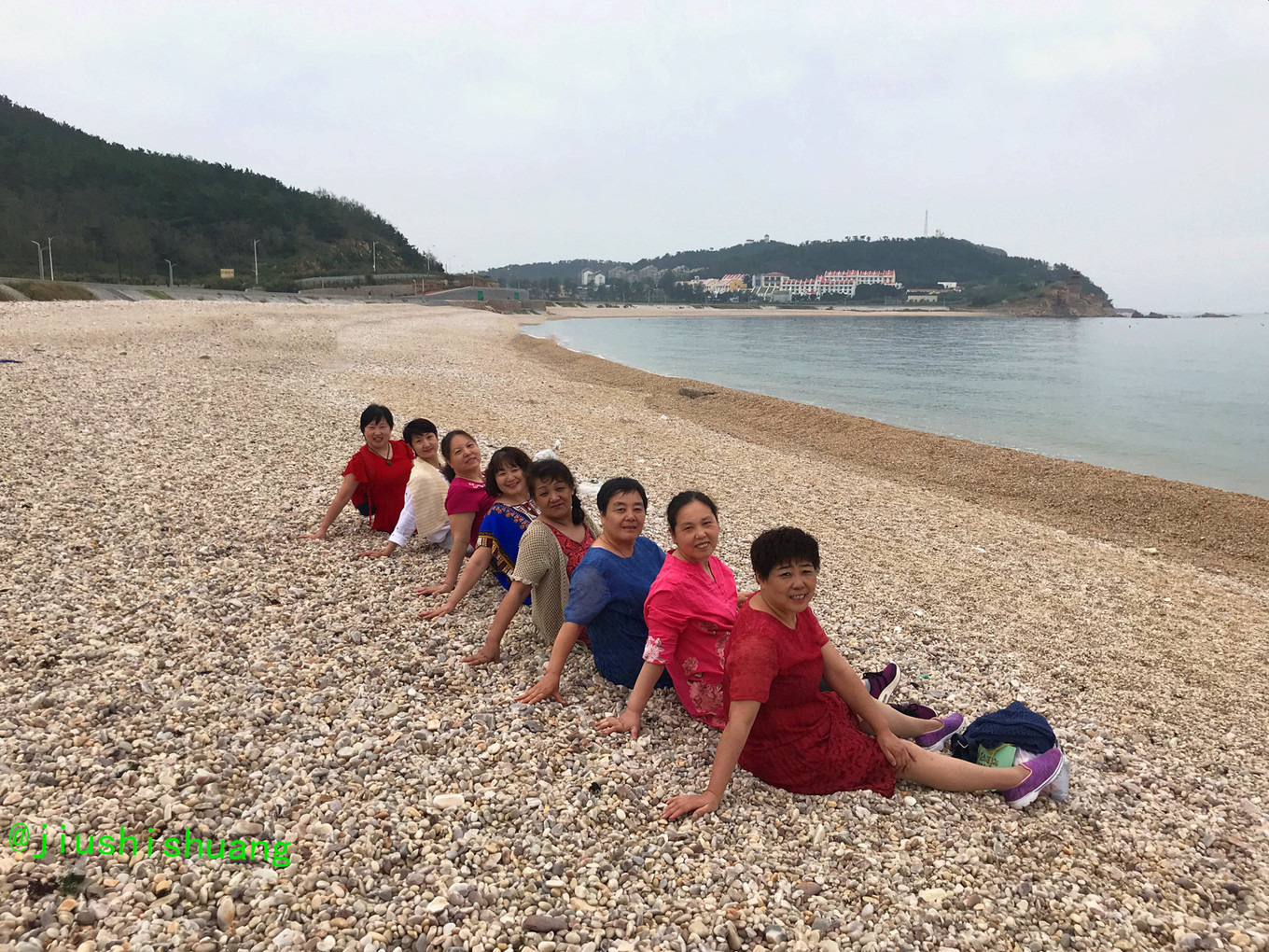 九丈崖在長(zhǎng)島最西北邊,是觀日落的絕佳景地,我們沒(méi)有看到九丈崖日落,一道(珍珠隧道)也沒(méi)有玩,姐妹們就想坐在石頭上,看著渤海海面上突出的礁石,靜靜地呆坐遐想......