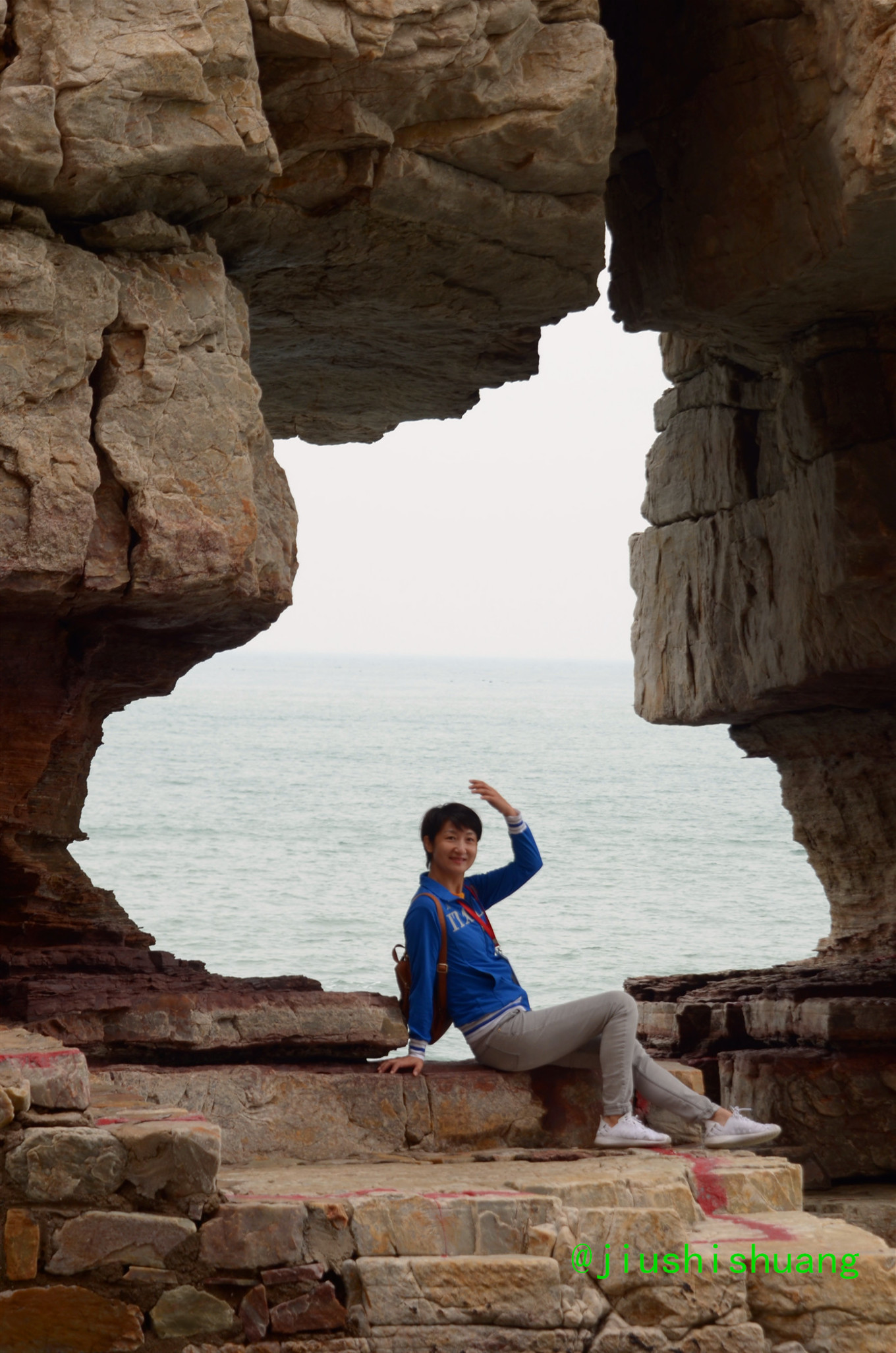 從山頂下來(lái),就到了龍爪山的西端,這里有一座兀自矗立于海上的方形石體,石體的四壁垂直入海,石體的上方有一天然形成的通透石洞,非常神秘吸睛。龍爪山的西端還有一個(gè)我國(guó)最大海蝕洞——聚仙洞,傳說(shuō)是八仙過(guò)海時(shí)的聚會(huì)之處,由于時(shí)間都用在拍照上了,所以沒(méi)有時(shí)間進(jìn)洞看仙兒啦。