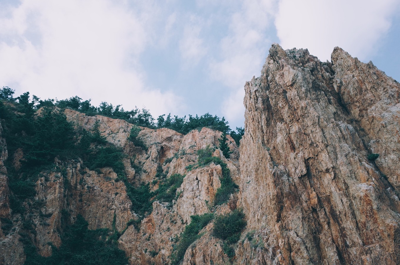 最后又游覽了九丈崖,如果說(shuō)烽山林海是蔥郁秀美,那九丈崖就是高峻壯觀,真的值得一看。高聳的懸崖從海邊拔地而起,置身懸崖之下,陽(yáng)谷被遮擋,踩著巨大的礁石與大海親密接觸,感慨自然的造化。